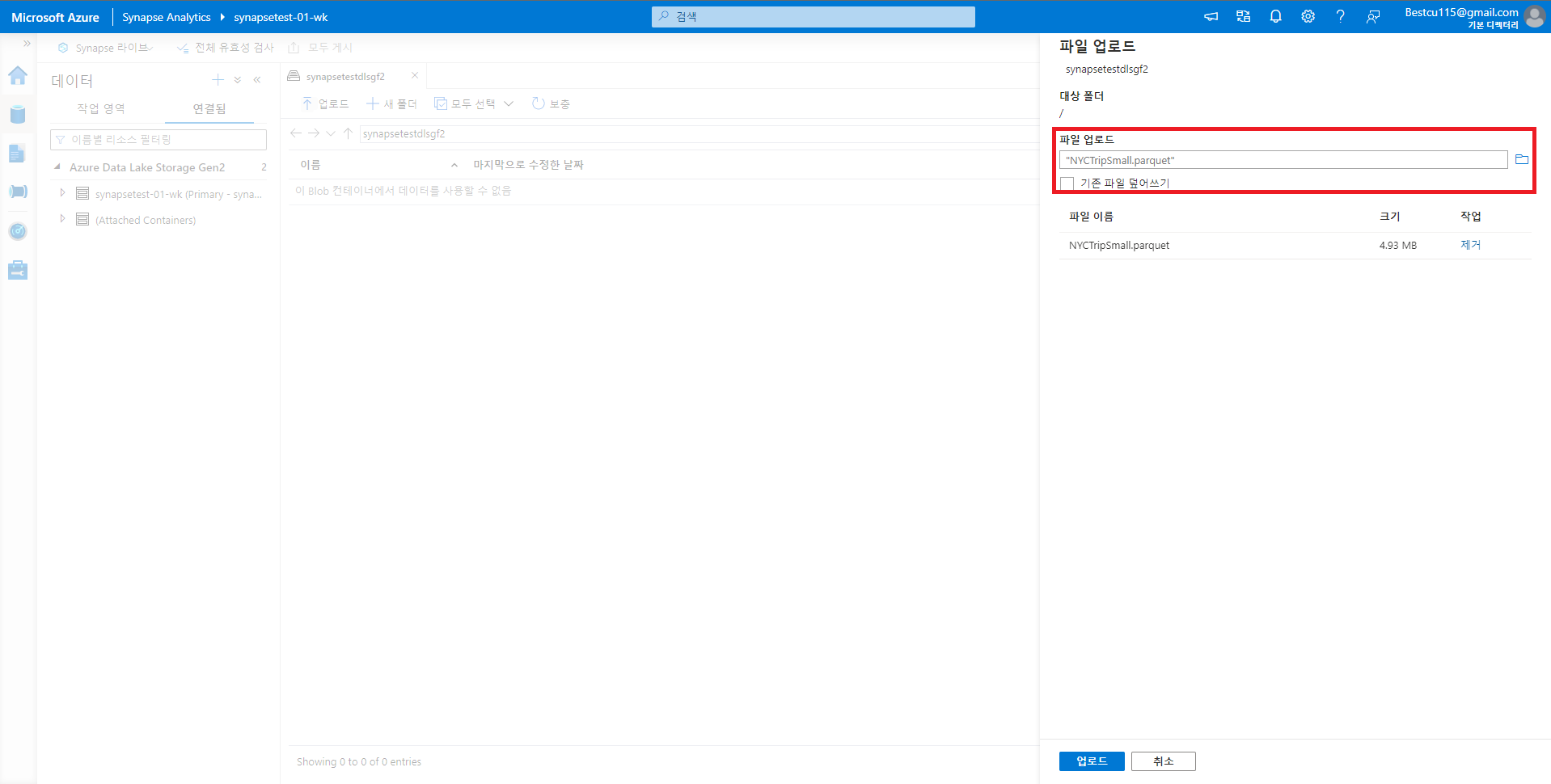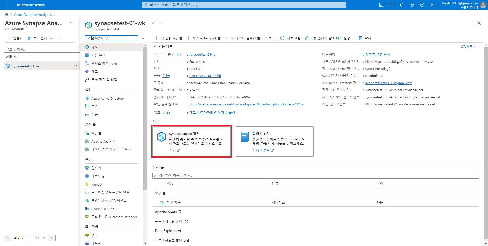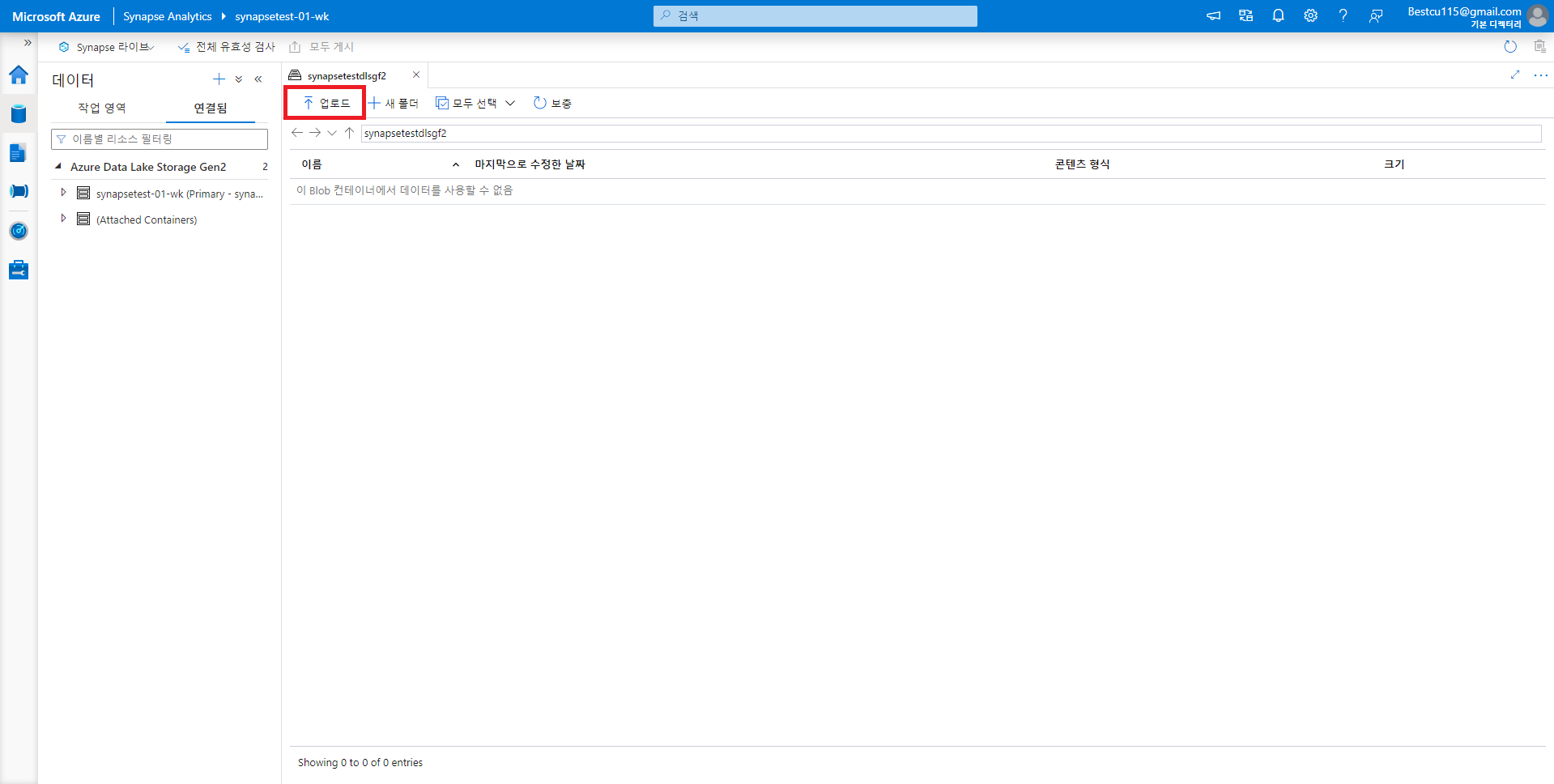 2. Synapse 작업영역 접속 및 데이터 업로드