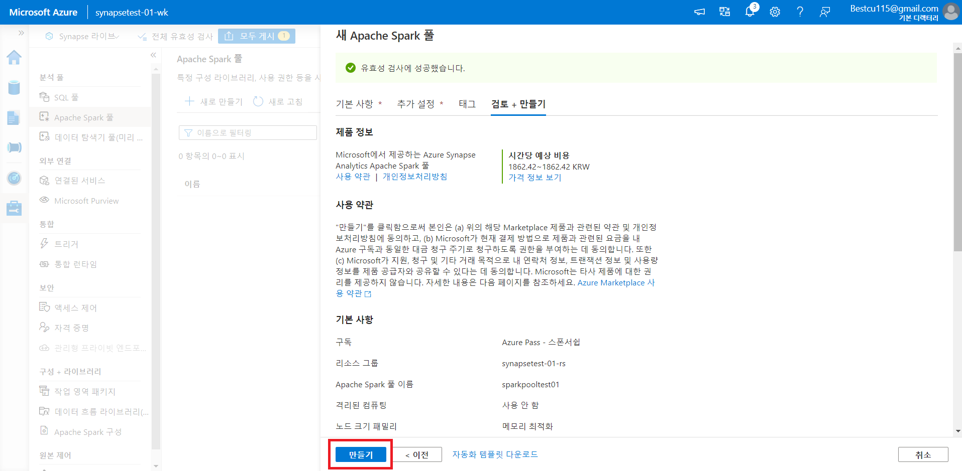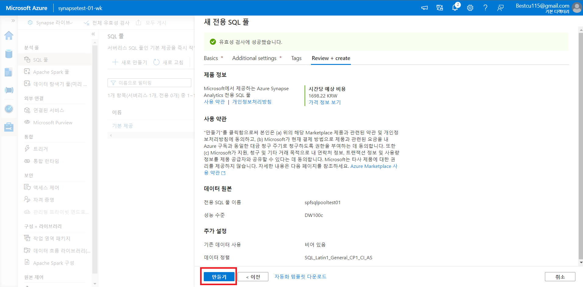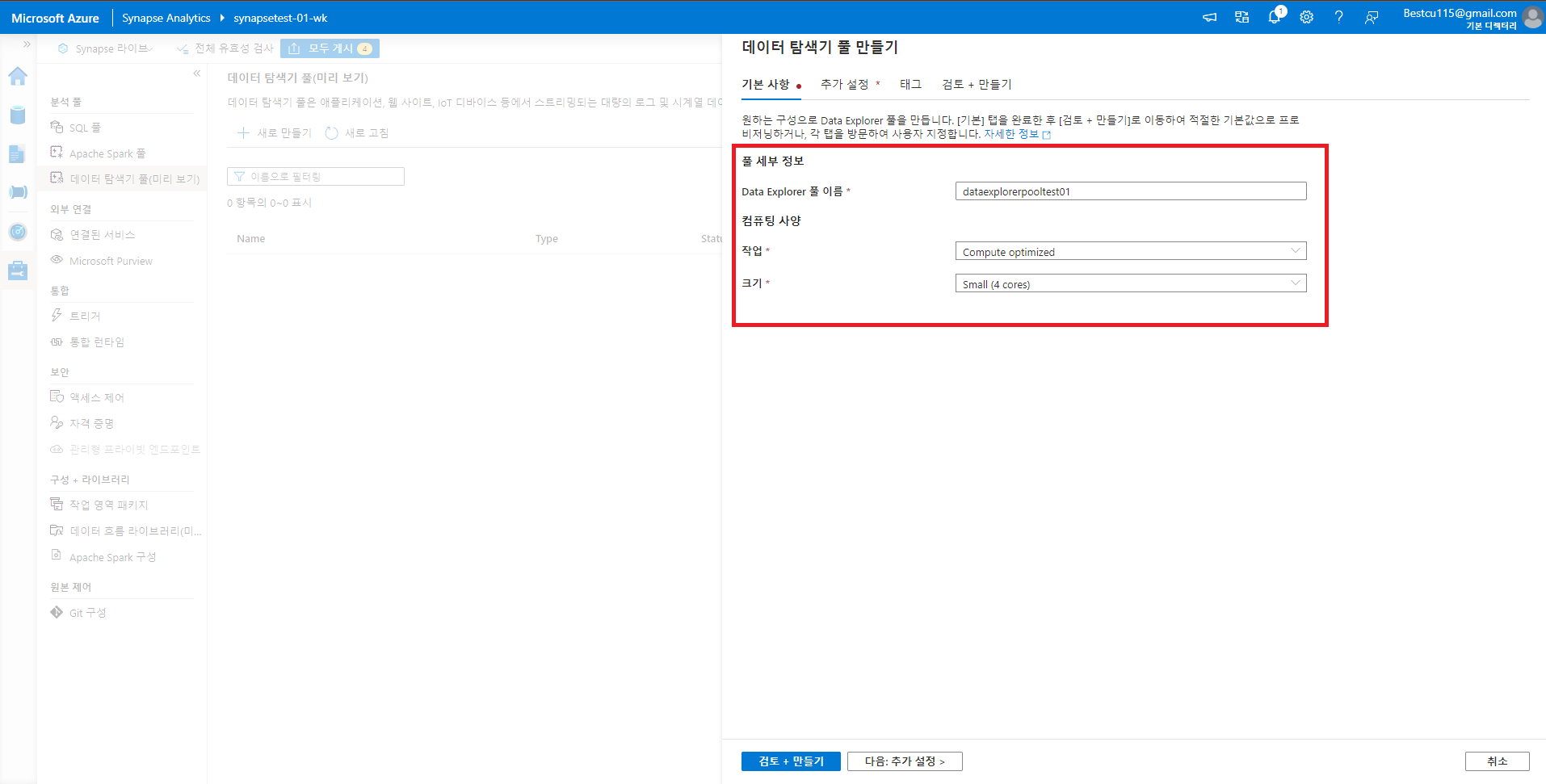 2. Synapse 작업영역 접속 및 데이터 업로드