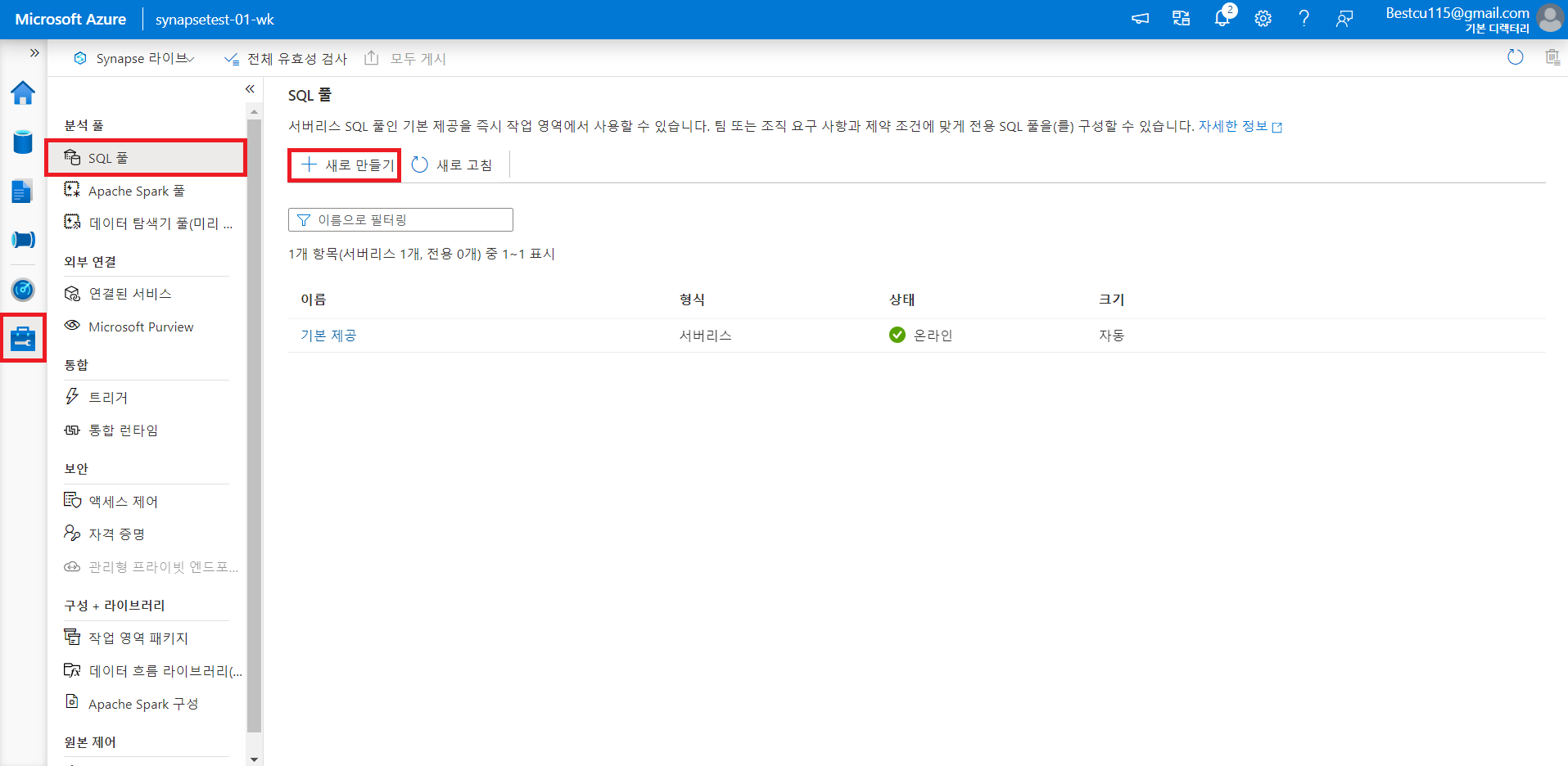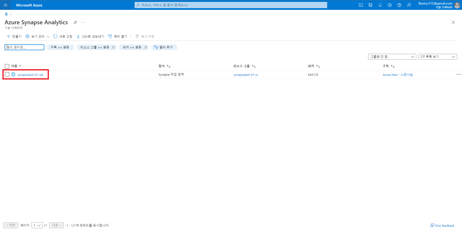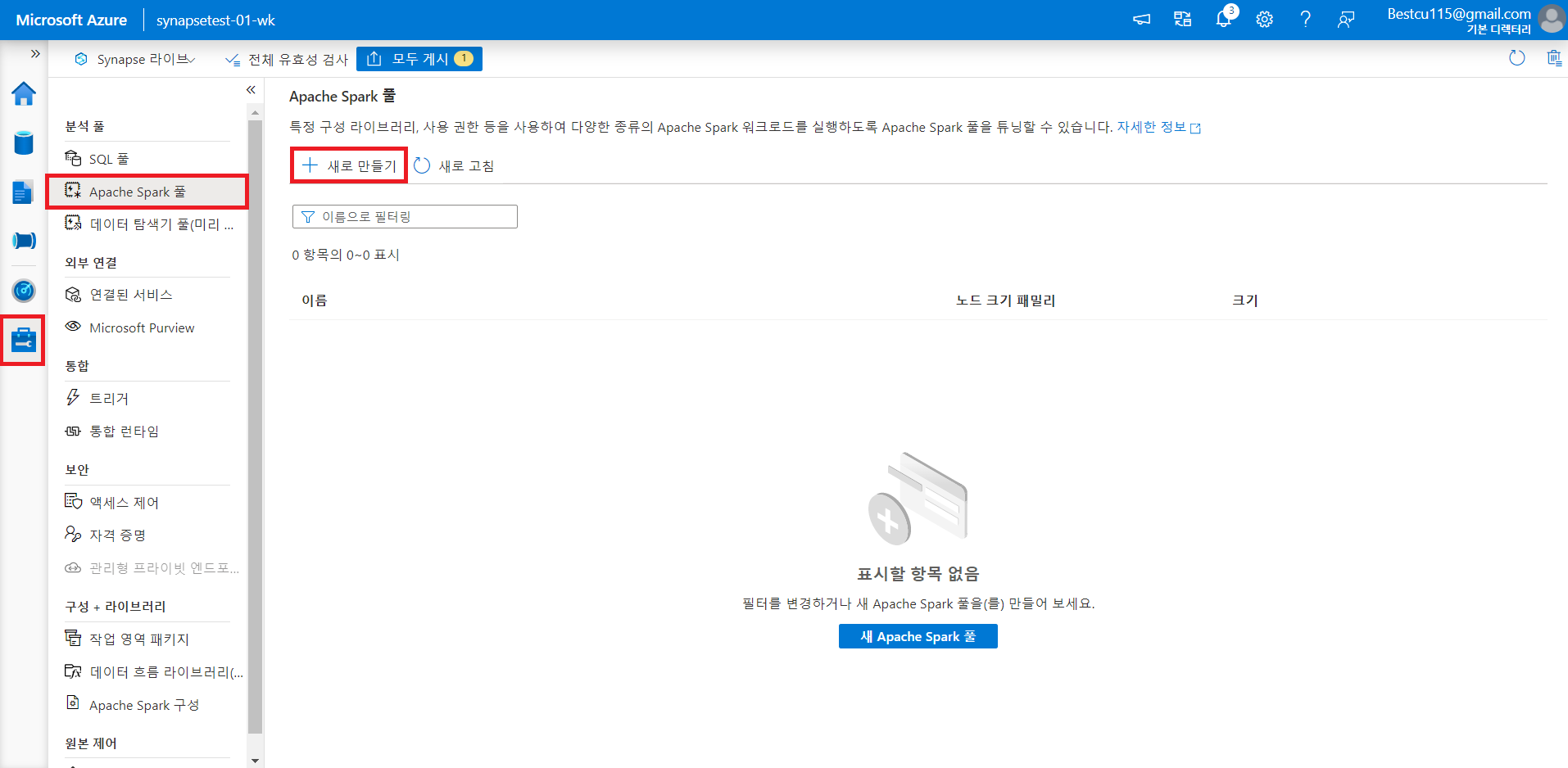 1. Synapse 작업영역 만들기