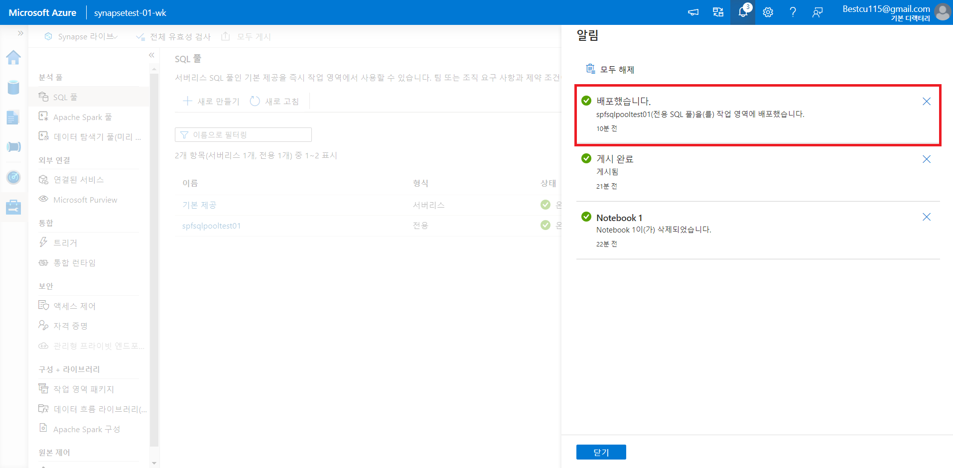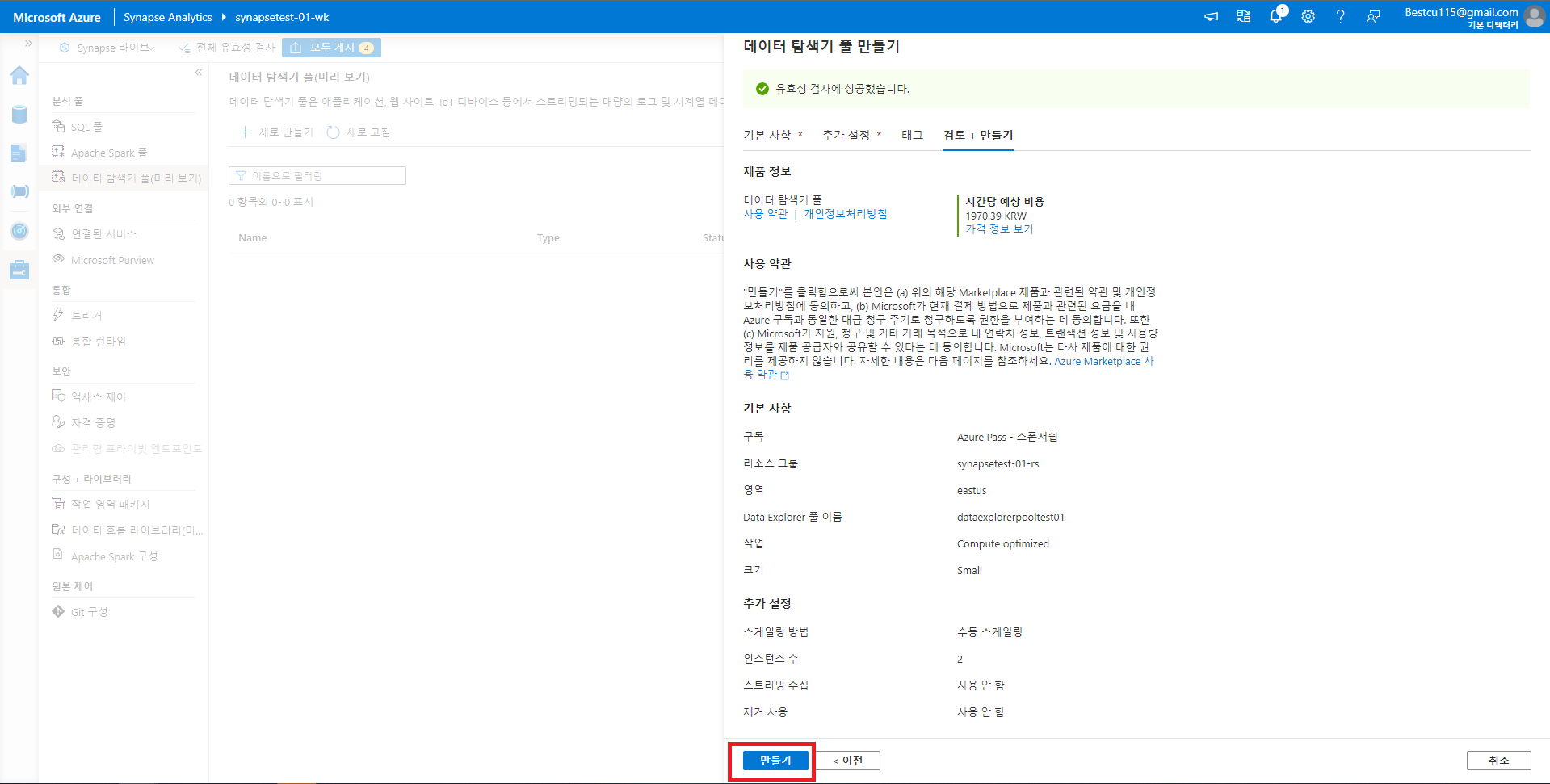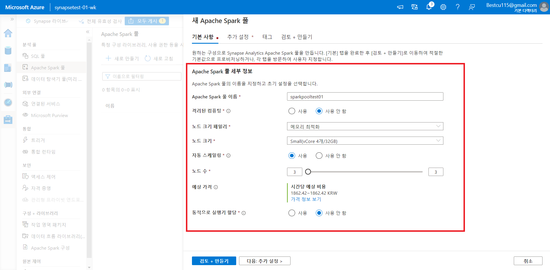 1. Synapse 작업영역 만들기