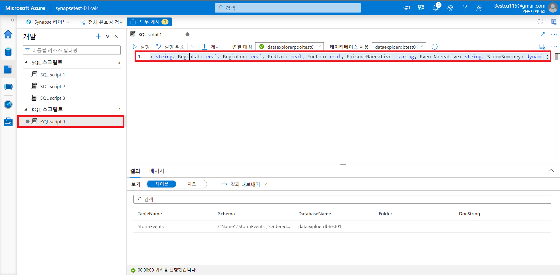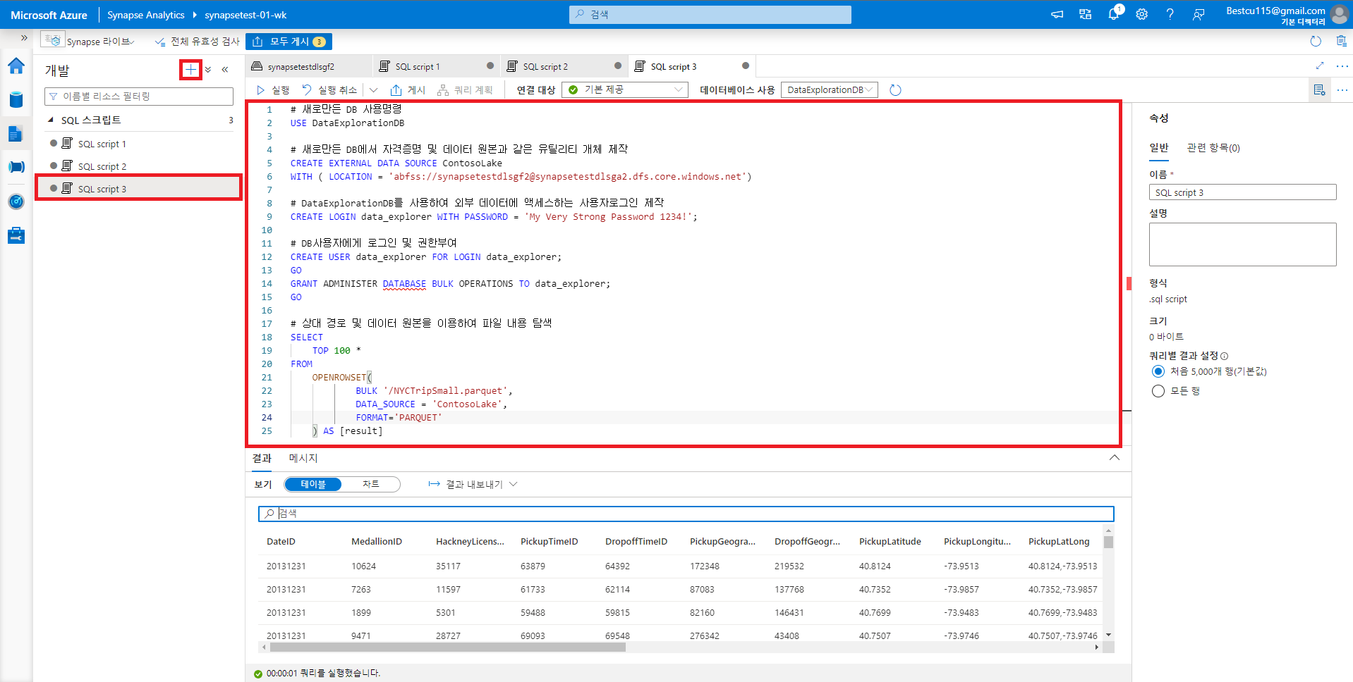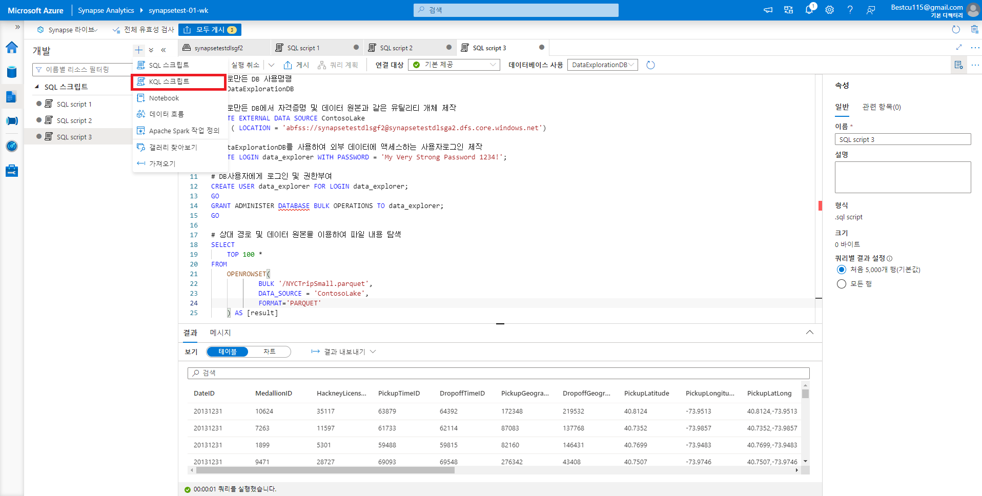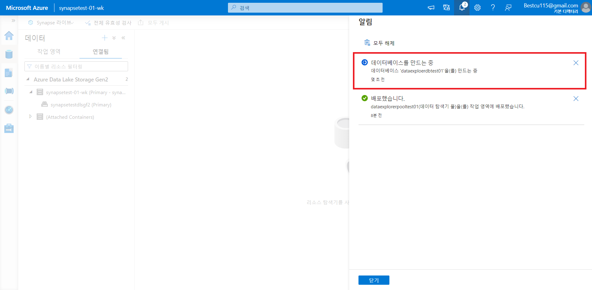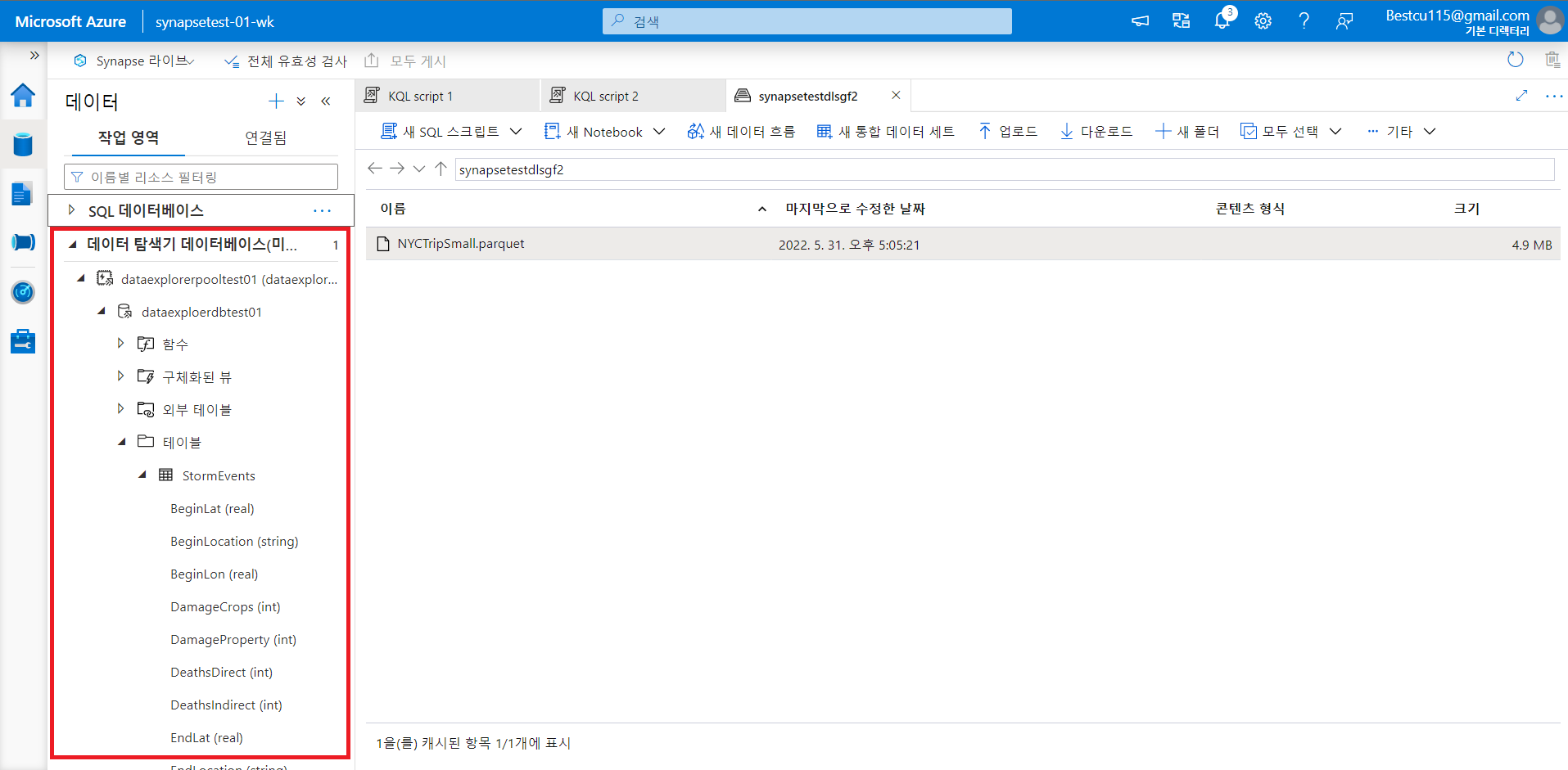 : Data Explorer 풀을 활용하여 데이터 분석을 하기 위해서는 Data Explorer DB 생성을 하는 것이 우선적으로 필요합니다. DB 생성 방법과 분석 방법 자체는 아래의 사진들을 참조하시면 쉽게 따라하실 수 있습니다.