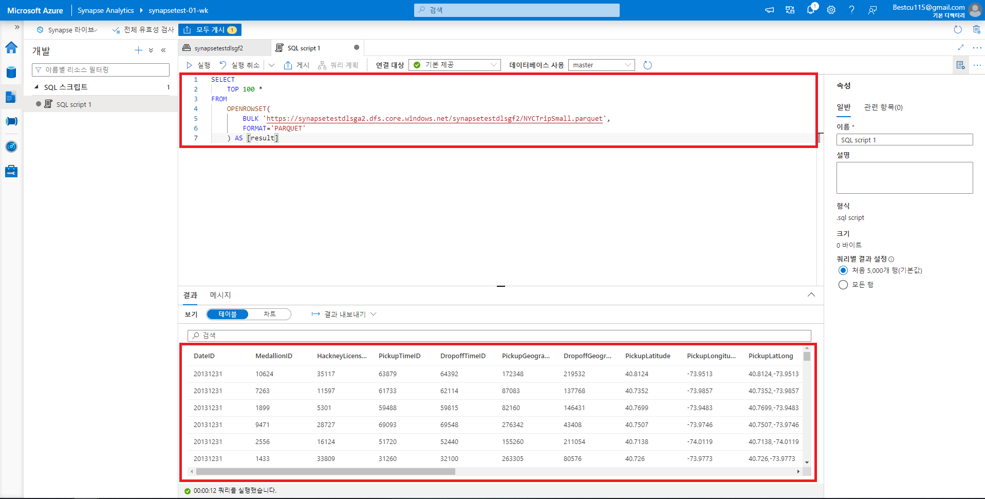 : ASA는 기본적으로 서버리스 SQL풀을 제공하며, 추가적은 SQL풀 생성 없이도 데이터 분석이 가능합니다. 비용 청구는 쿼리실행에 사용된 노드 수가 아닌 처리된 데이터의 양을 기준으로 한다는 점 참고하시면 좋을 것 같습니다. 세부적인 내용은 아래 사진들을 참고하시면 쉽게 따라하실 수 있습니다.