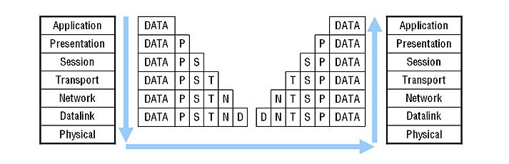 : OSI 7 Layer에서는 데이터 캡슐화 과정을 거쳐서 통신이 이루어지게 되는데, 데이터 캡슐화란 데이터가 각 계층을 지나면서 하위 계층은 상위 계층으로부터 온 정보에 자신의 계층 특성을 담은 제어정보를 헤더화 시켜 붙이는 일련의 과정을 의미합니다. PDU(Protocol Data Unit)은 프로토콜 데이터 단위이자 정보처리단위로 캡슐화 과정에서 생성되며, 아래층으로 갈 수록 다양한 헤더와 푸터가 더해집니다.