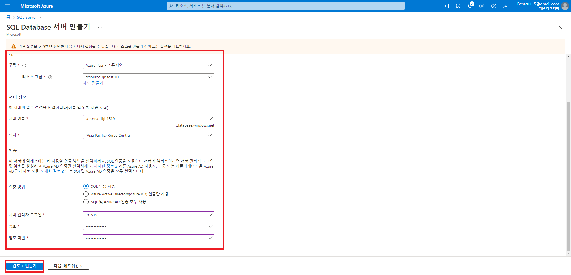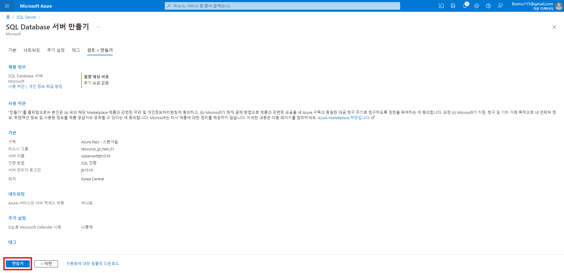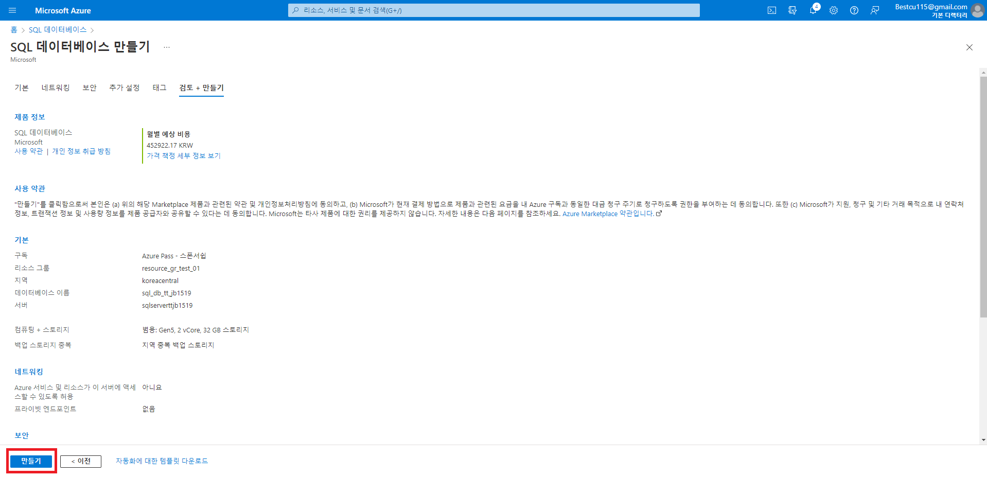 : Azure에서 제공하는 서비스들을 이용하고 관리하기 위해서는 최우선적으로 리소스 그룹을 만들어야 하며 추후에도 생성한 서비스들을 이 리소스 그룹 중 하나에 묶어서 관리를 하게 됩니다. 즉, 리소스 그룹을 만드는 것이 가장 먼저 이루어지는 과정이며, 생성시 작성하는 계정이름 및 각종 정보들은 반드시 메모장이나 다른 곳에 내용을 작성 후 보관해주시는 게 좋습니다.
