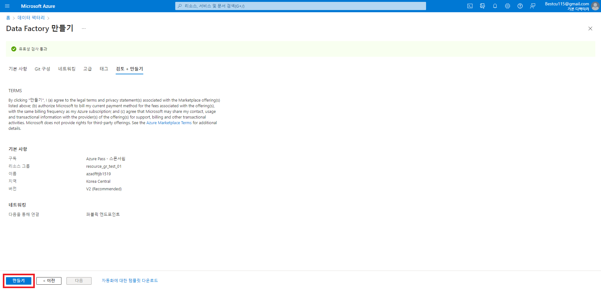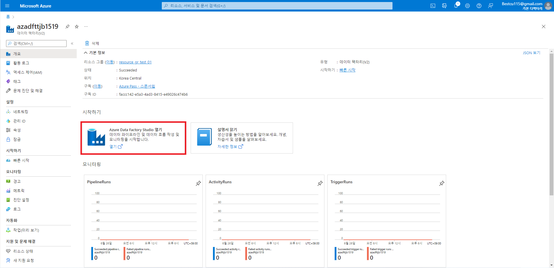 위의 과정들을 잘 따라하신다면 Azure Data Factory의 작업영역 및 기술도구 생성을 진행하실 수 있습니다.