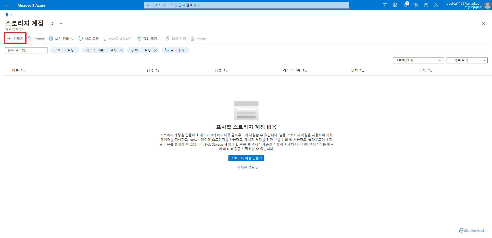 : Azure Data Factory에서 사용할 각종 파일들을 저장하고 활용하기 위해서는 스토리지 계정 생성이 필요합니다. 생성하는 방법은 매우 간단하며 아래의 생성 절차를 따라하시면 쉽게 생성하실 수 있습니다.