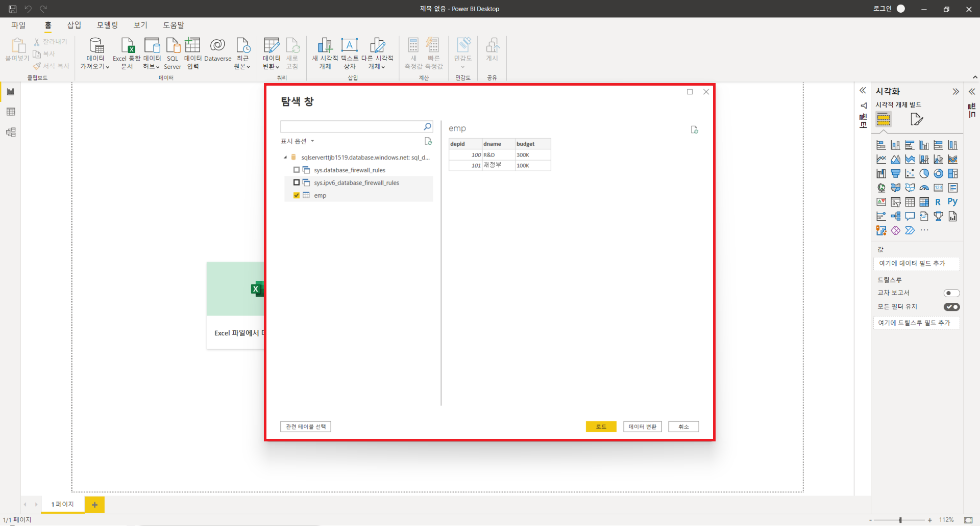 3-3. 방화벽 설정 후 SSMS접속, 예제 테이블 생성 후 Power BI에서 Data 로드
