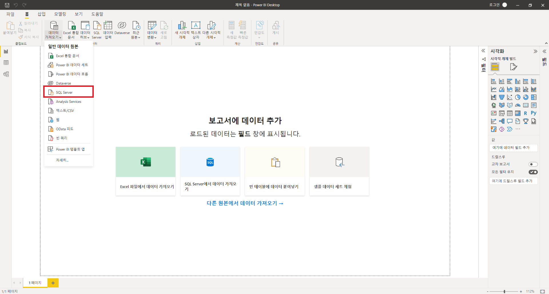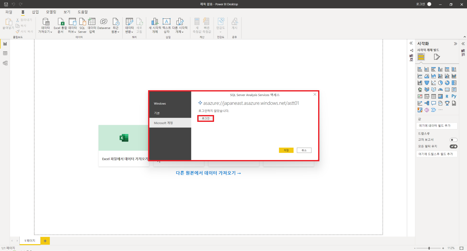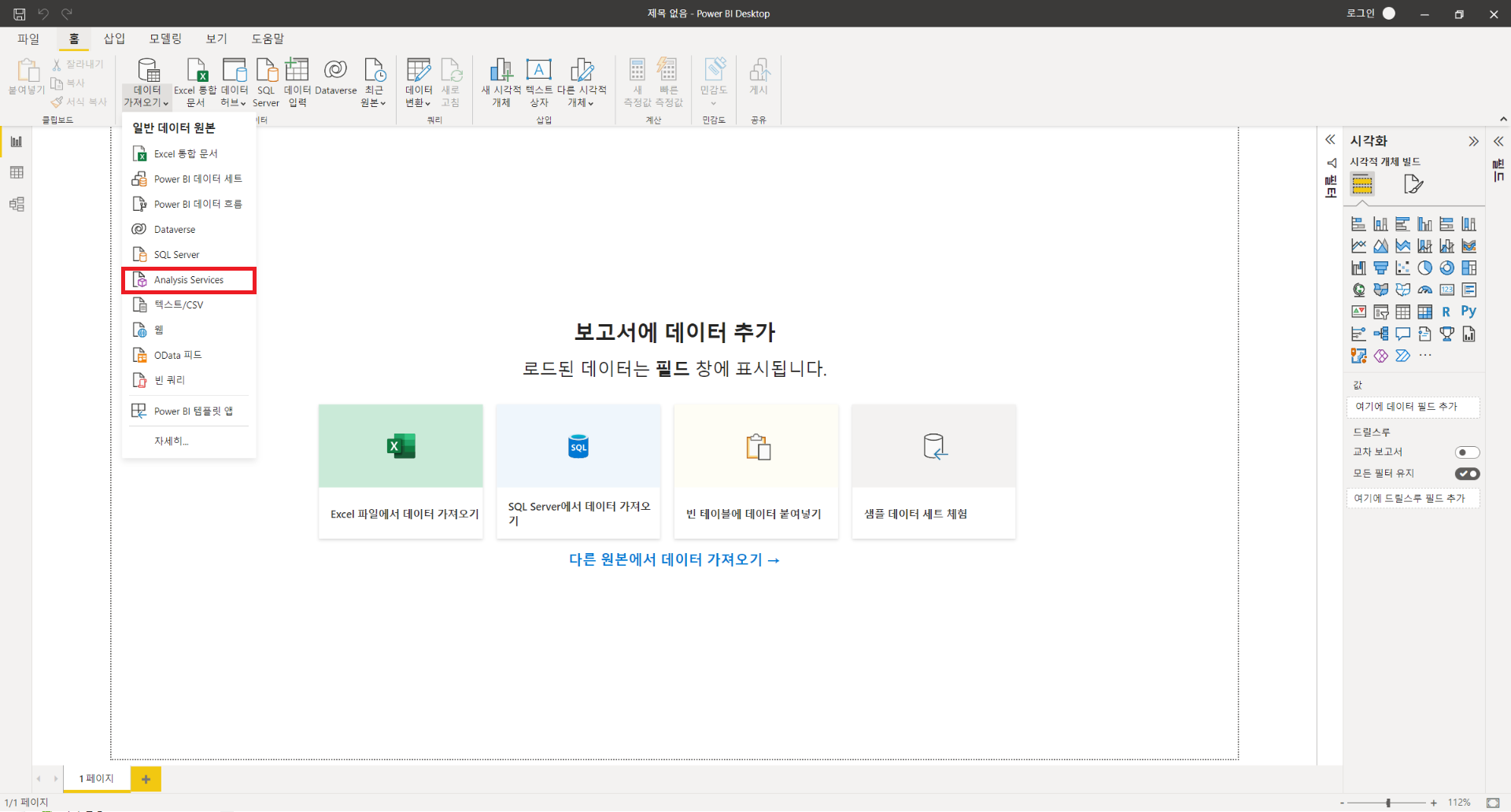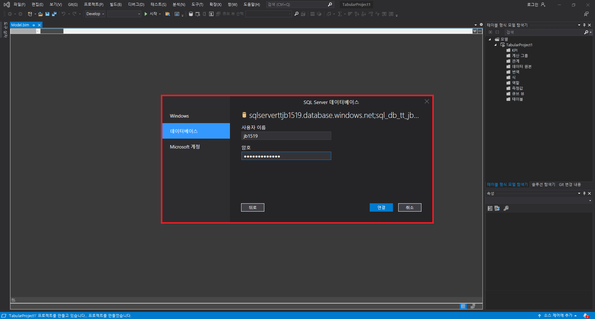 : 위와 같이 데이터를 변형하는 과정을 구성하였다면 PowerBI와 SQL DB를 직접연결하여 데이터를 시각화하거나 Analysis Service를 생성하여 PowerBI와 연결하여 시각화할 수 있습니다. 데이터가 많고 분석해야할 내용이 많다면 PowerBI의 자체기능만으로 작성하게 되면 속도와 성능문제가 존재하기에 분석을 따로 해준 후 결과값만을 로드해서 사용해서 쓸 수 있게 해주는 서비스를 Analysis Service라고 생각하시면 됩니다. Analysis Service 사용을 위해서는 Visual Studio의 사용이 필수적이며, 환경설정도 그에따라 맞추는 과정이 필요합니다. 이번 게시글에서 사용한 환경설정이 궁금하신 분들은 위의 게시물을 참조하시기 바랍니다. SQL DB와 직접 연결하는 방법은 매우 간단하며, 자세한 방법은 아래와 같습니다.