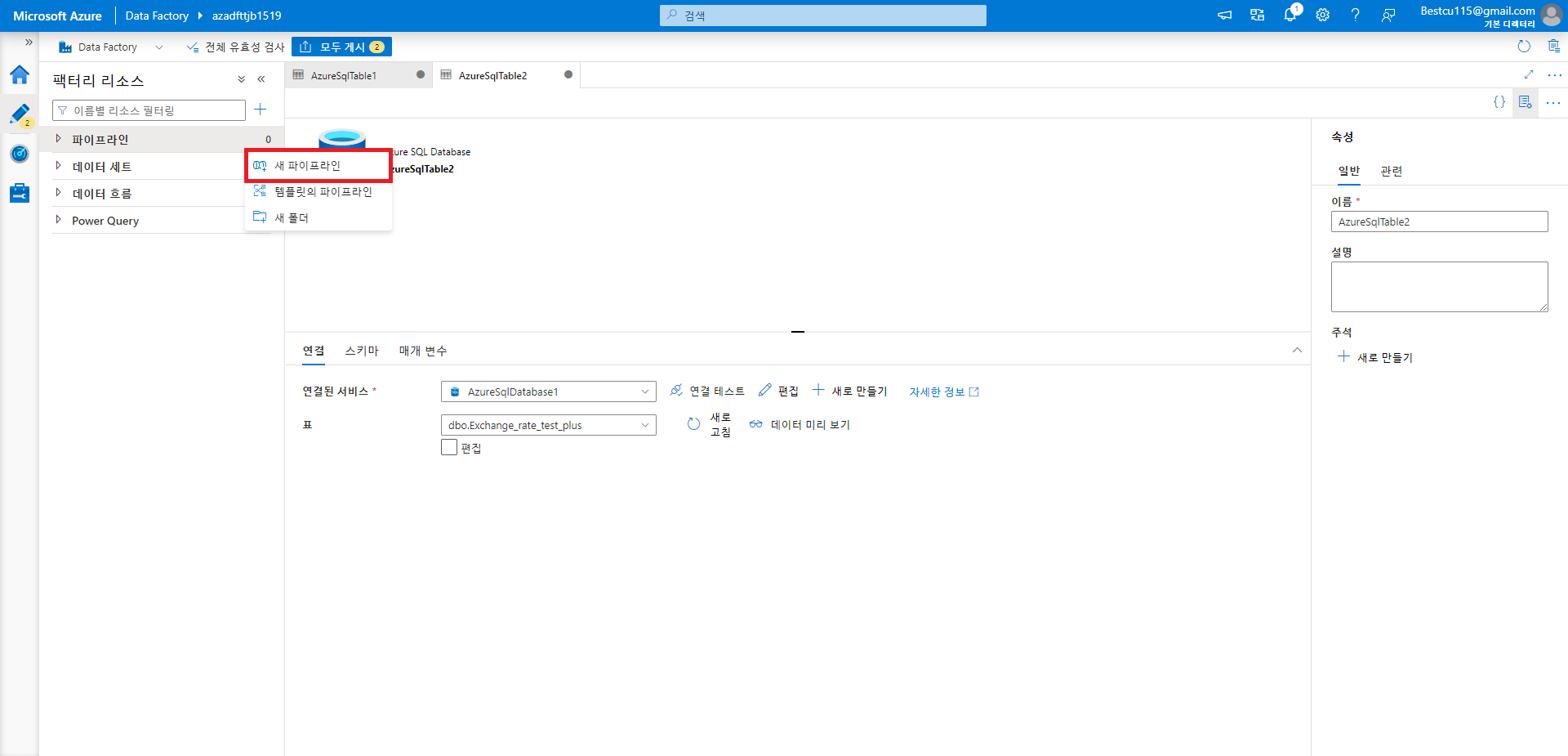 [클라우드 서비스 / Azure] Azure Data Factory 사용방법(1)