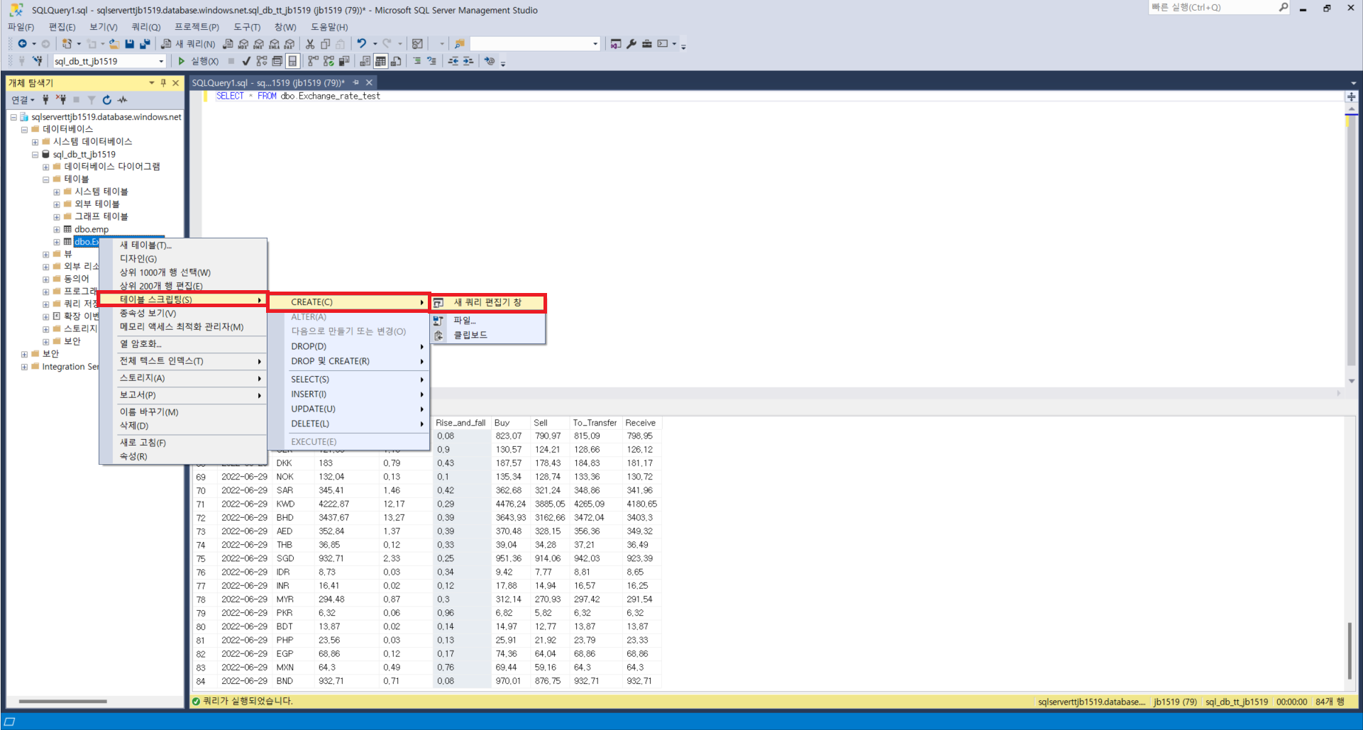 : ADF에서 Transform과정을 자동화하기 위해서는 사전에 SQL DB상에서 테이블을 만들고, 이를 ADF에 연결하는 과정이 필요합니다. 이번에는 RPA과정에서 적재한 환율정보를 바탕으로 작성하였고, 전일대비 변화값이 기존 크롤링데이터에는 원/외화 단가 밖에 없던 것을 살때, 팔때, 송금할때, 받을 때 기준의 전일대비 변화량 또한 볼 수 있게 쿼리를 작성하였습니다. 테이블 생성과 쿼리문 작성이 되었다면 파이프라인의 트리거를 통해 해당 과정이 일일단위로 자동적으로 실행되도록 하는 것이 가능합니다. 이번에는 코드문의 단순화를 위해 트리거 실행시마다 해당 테이블의 데이터를 모두 지운 후 다시 넣는 형태로 작성하였습니다. 테이블 생성 및 쿼리문, 파이프라인 구성 절차는 아래와 같습니다.