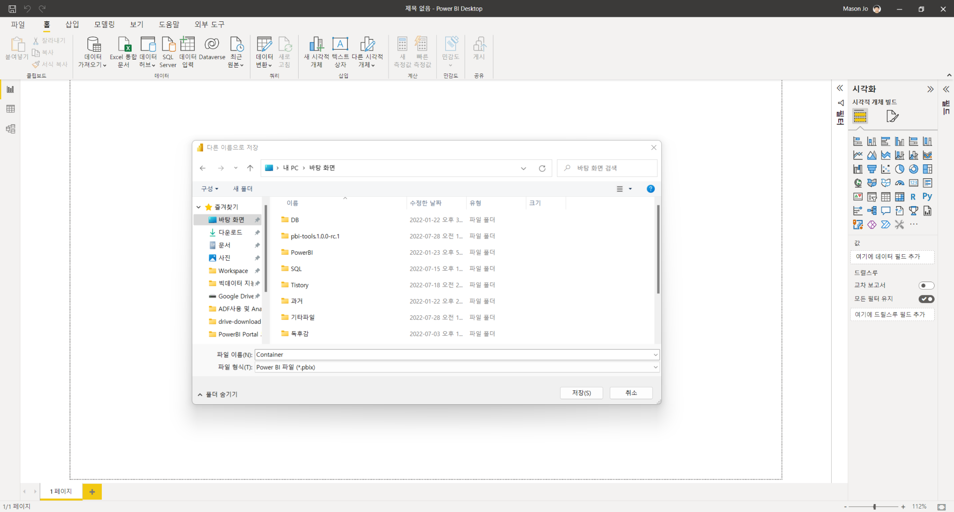 ★ 컴파일시 PBIX파일로는 컴파일이 안될 수 있습니다. PBIT 파일로 복구 후 PBIX파일로 강제 형변환 해주시면 됩니다.