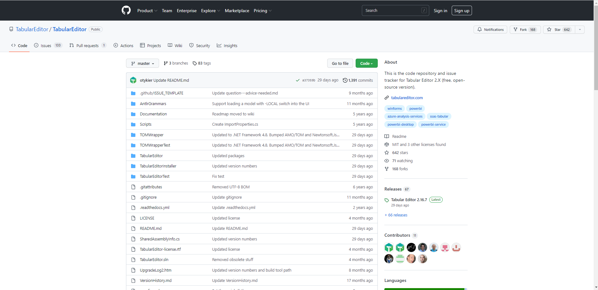 This is the code repository and issue tracker for Tabular Editor 2.X (free, open-source version). - GitHub - TabularEditor/TabularEditor: This is the code repository and issue tracker for Tabular E...