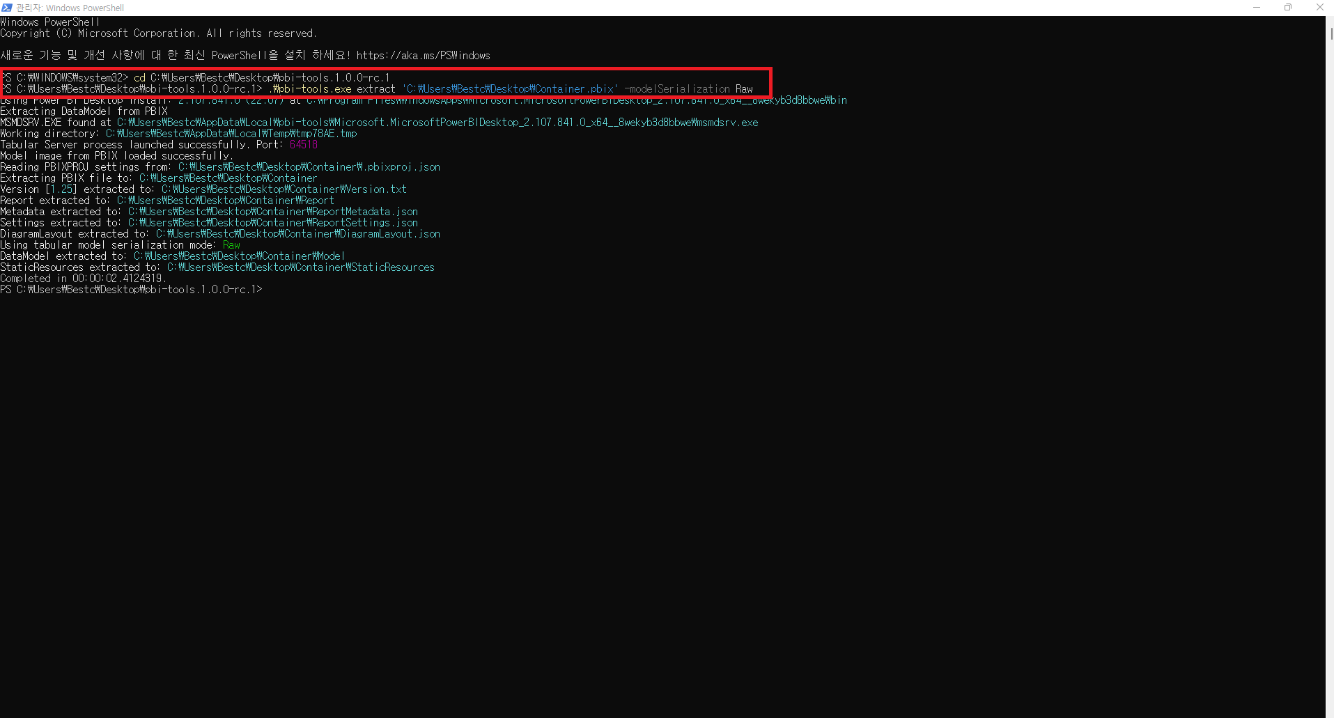 ★ .\pbi-tools.exe는 pbi-tools.exe가 위치한 파일위치로 작성해주셔야 합니다.