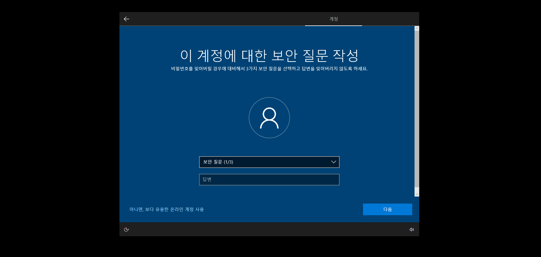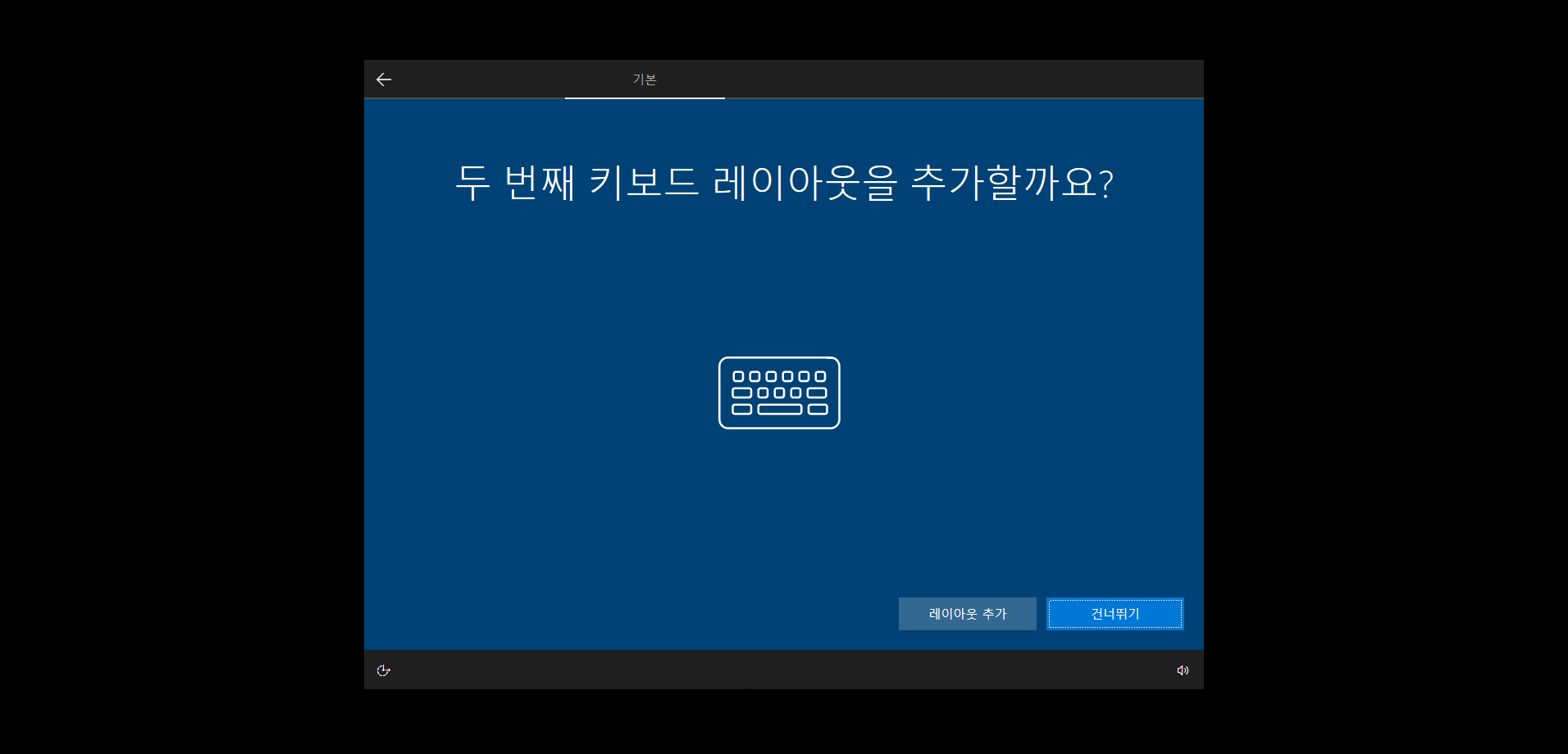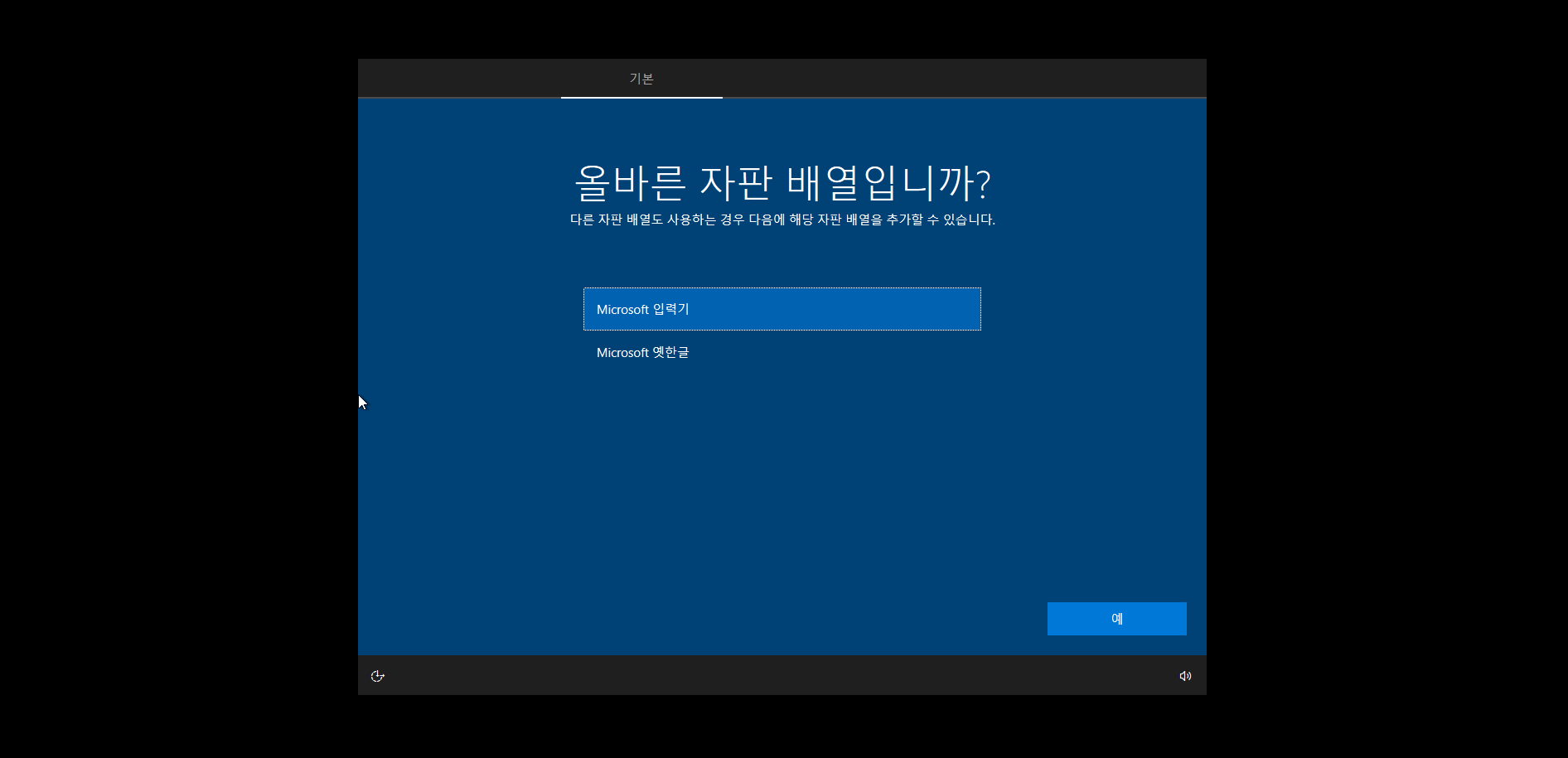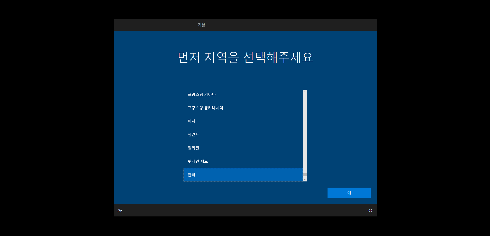 - 지역 및 키보드 설정, 개인 또는 조직 설정을 진행합니다.