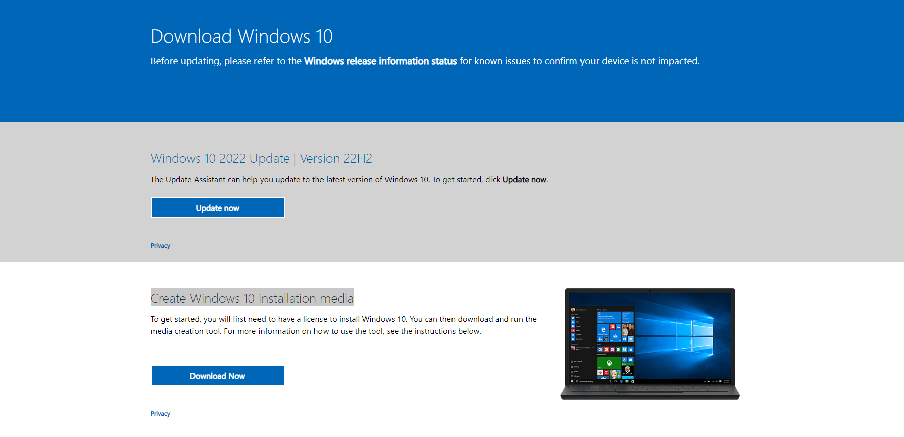 - Microsoft 사의 Windows 10 설치파일 사이트 접속 후 Create Windows 10 installation media 파일을 다운로드합니다.