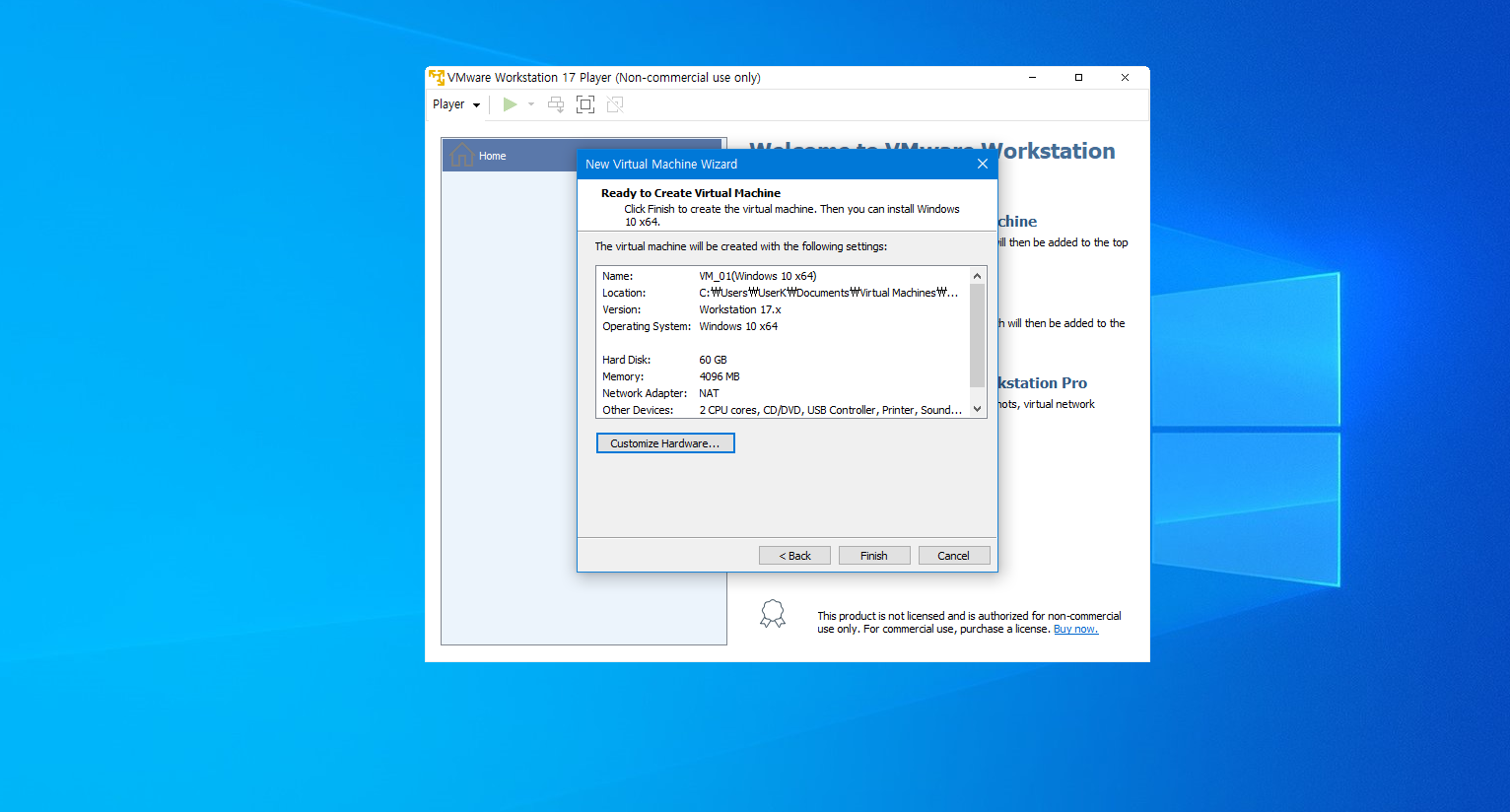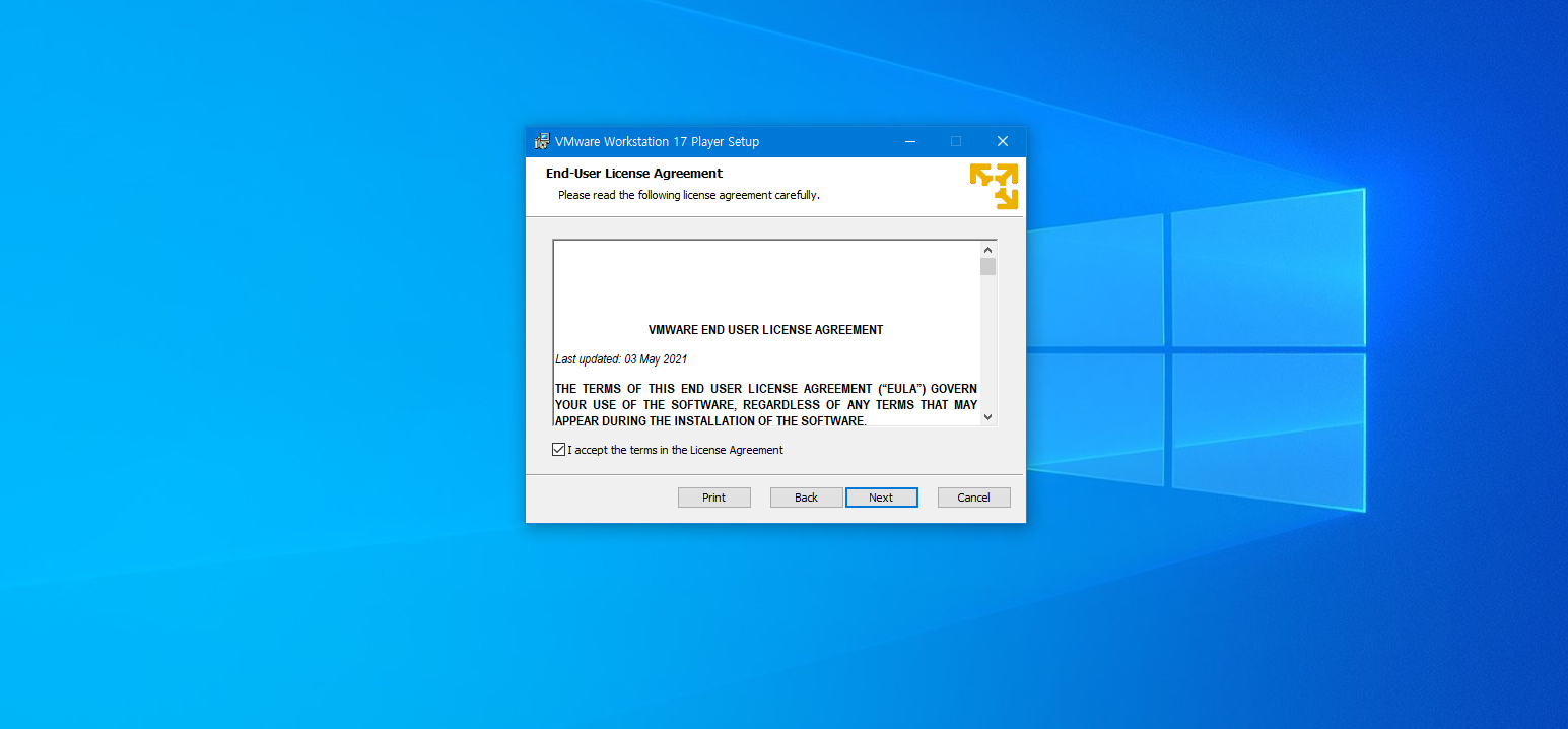 VMware Workstation Player 설치방법은 아래와 같습니다.