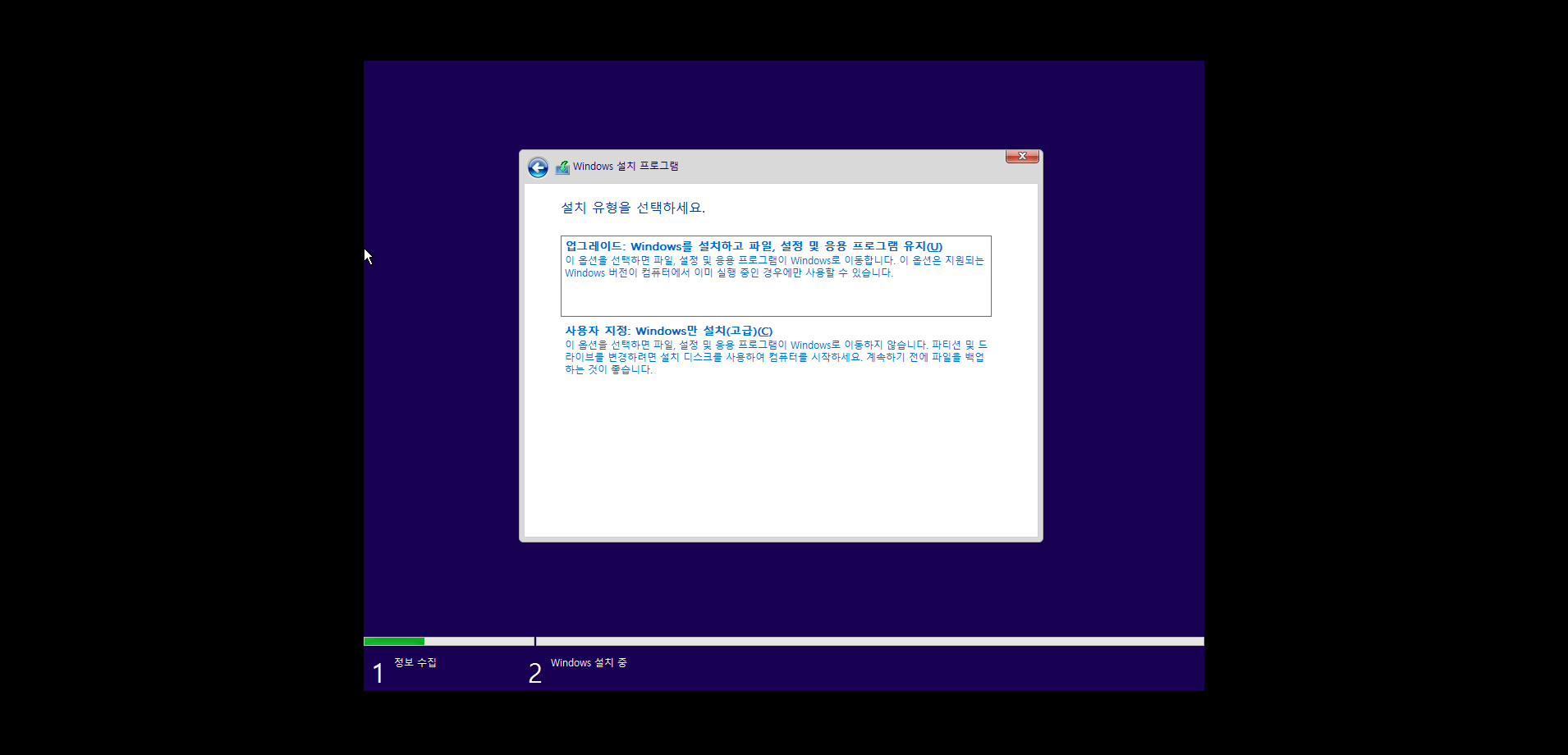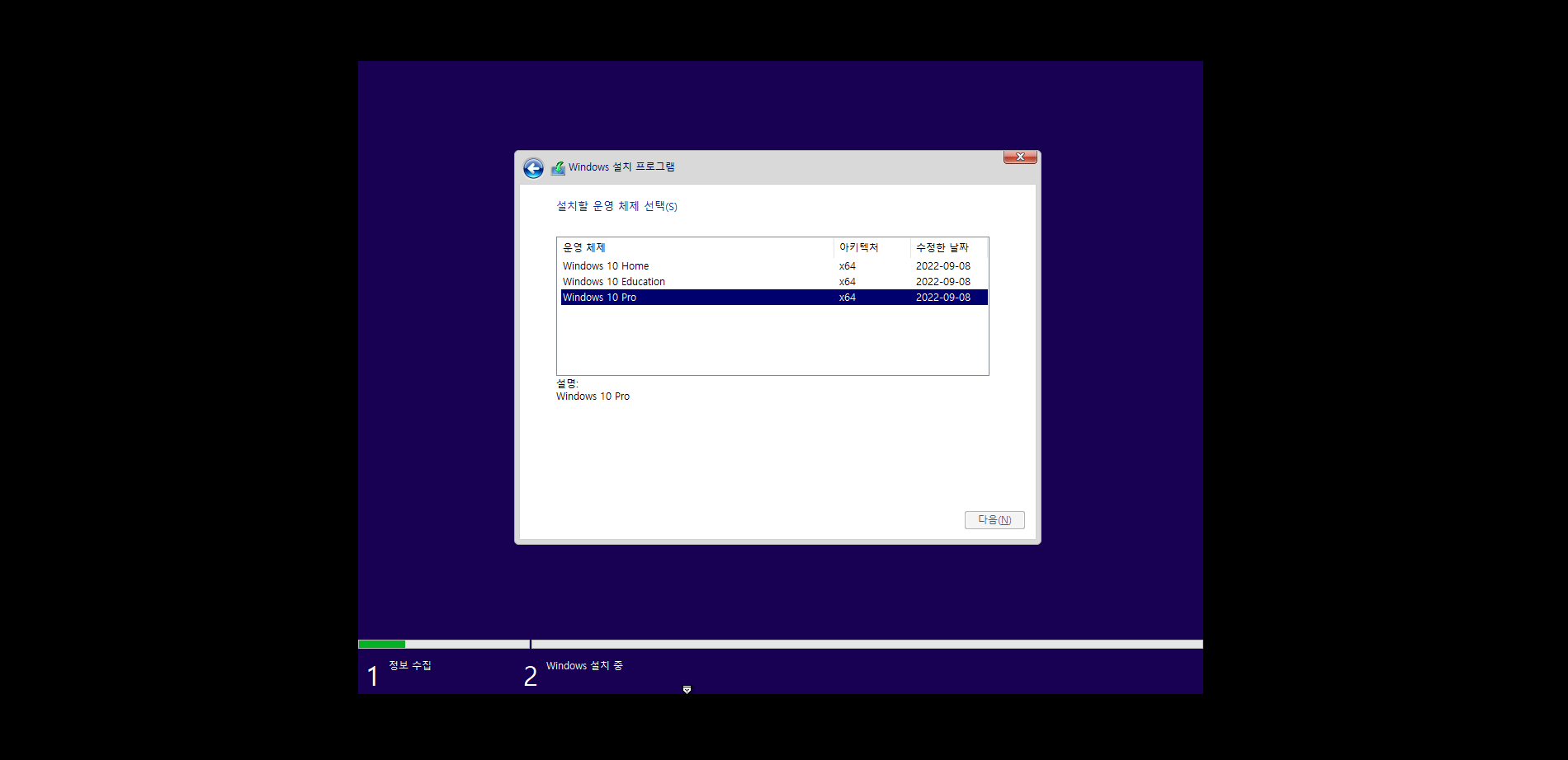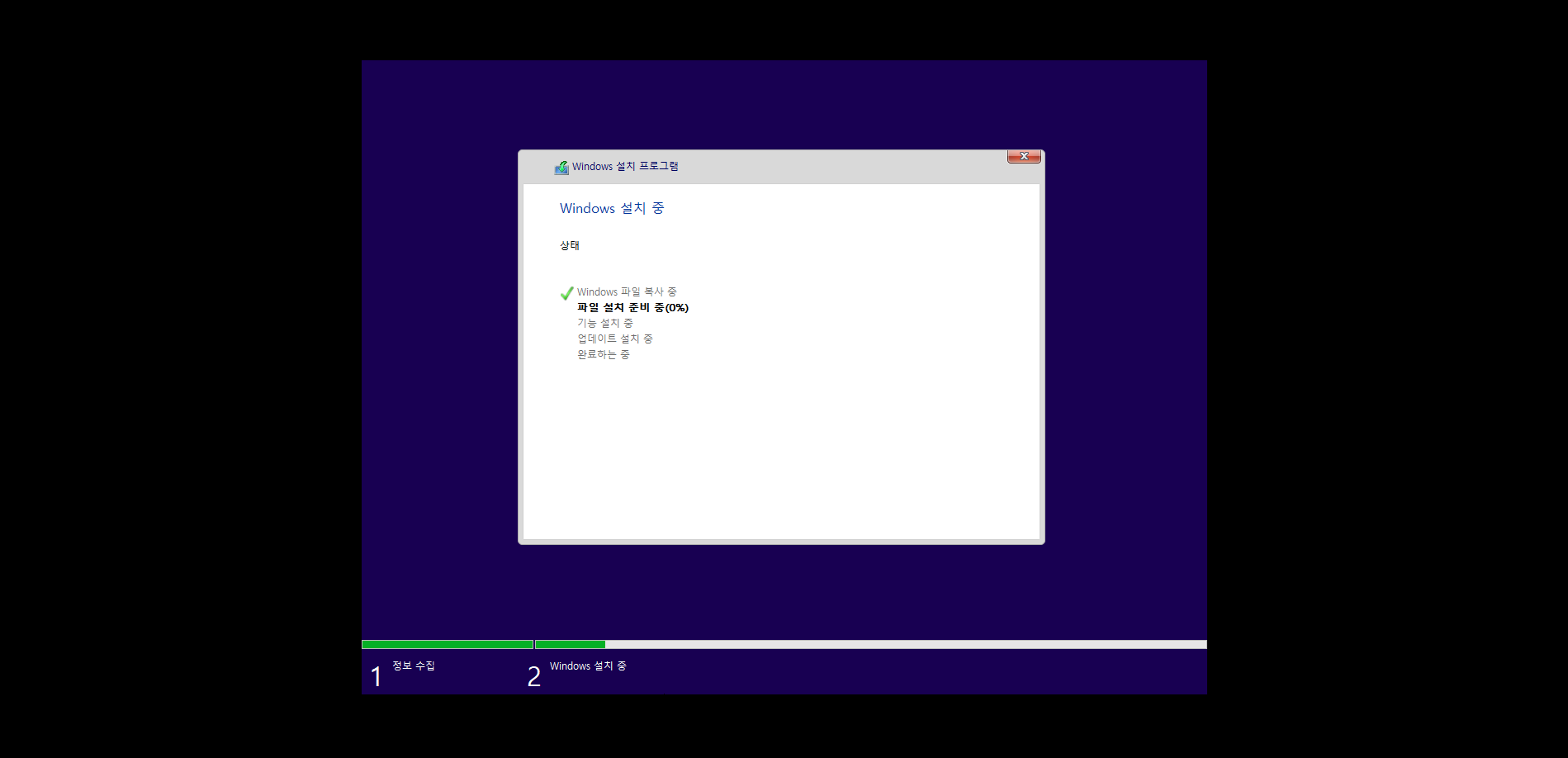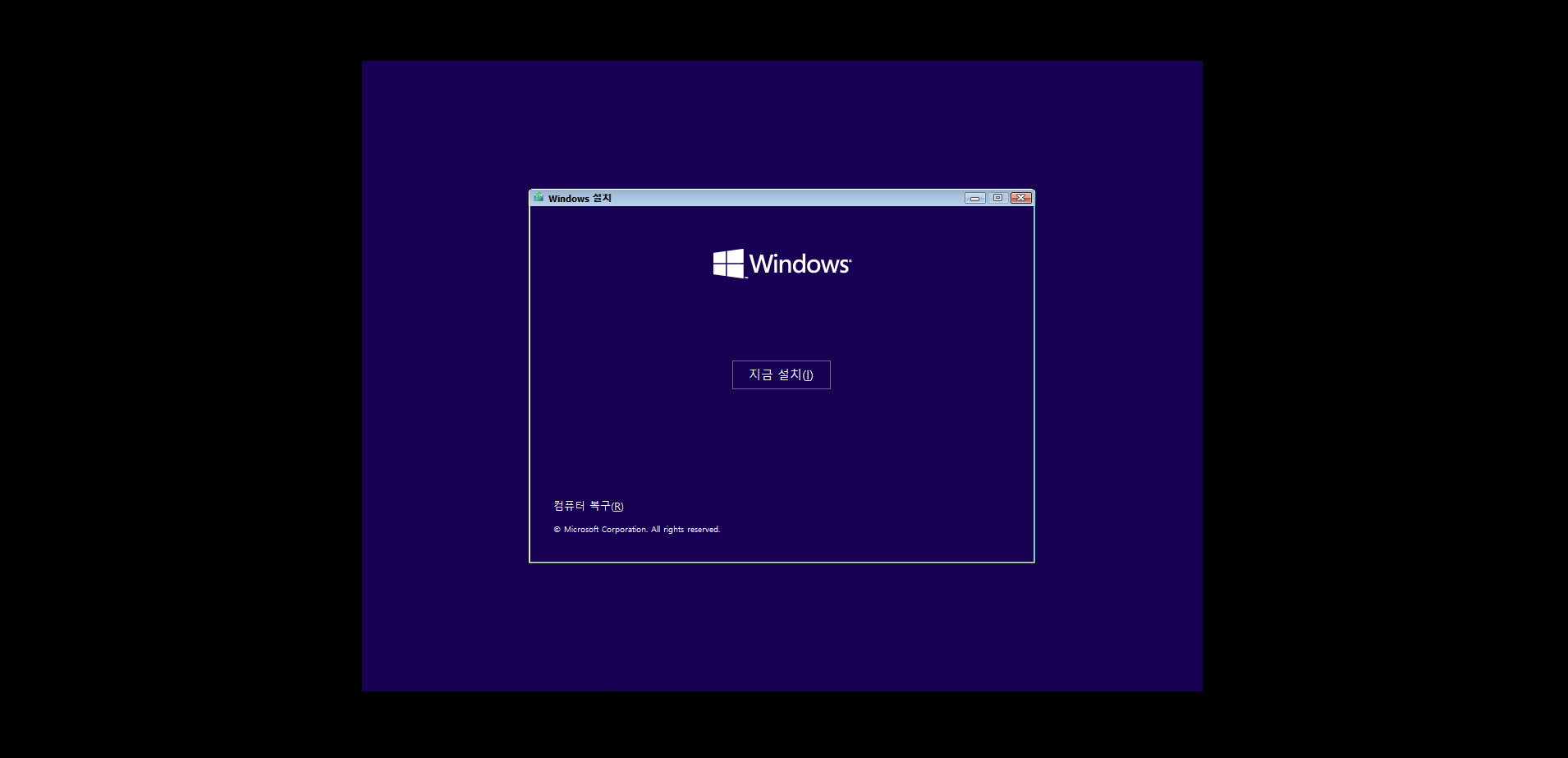 3. Windows 설치창이 뜨면 절차대로 설치를 진행합니다.
