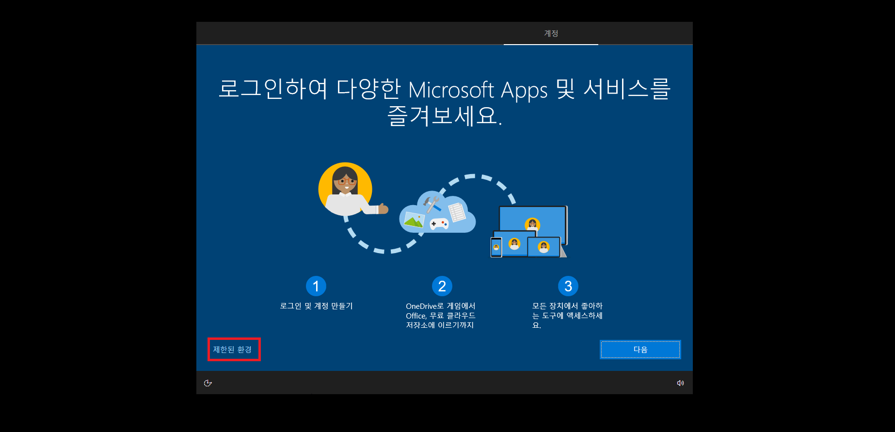 (환경설정 시에는 오프라인 계정-제한된 환경-계정ID/PW생성으로 진행하였습니다.)
