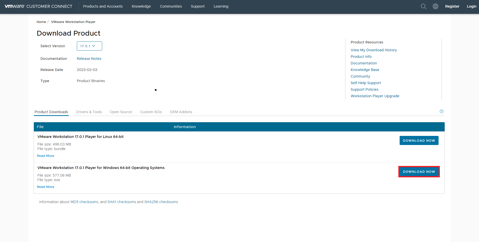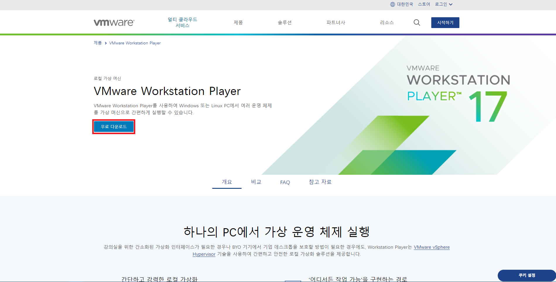 VMware Workstation Player는 2024년 4월 30일부로 더 이상 공식 홈페이지에서 제공하지 않는 것으로 정책이 변경되었습니다. 다만, VMware Workstation Pro를 무료로 개인이 이용할 수 있게 제공 중이니 기존의 Player 설치 파일로 설치를 원하시는 분이 아닌 분들은 VMware Workstation Pro를 아래 링크 게시물을 참고하여 사용하시면 되겠습니다.