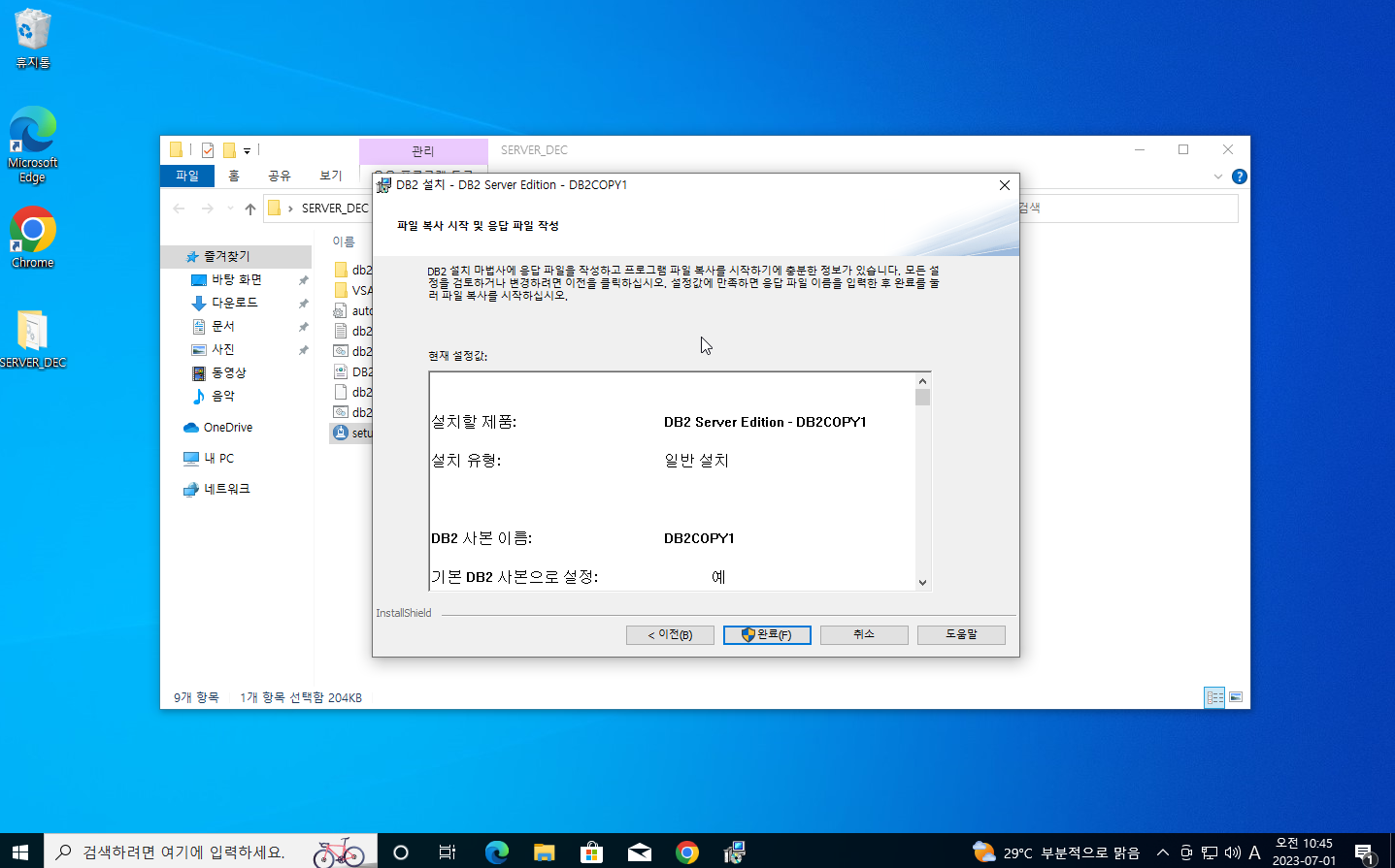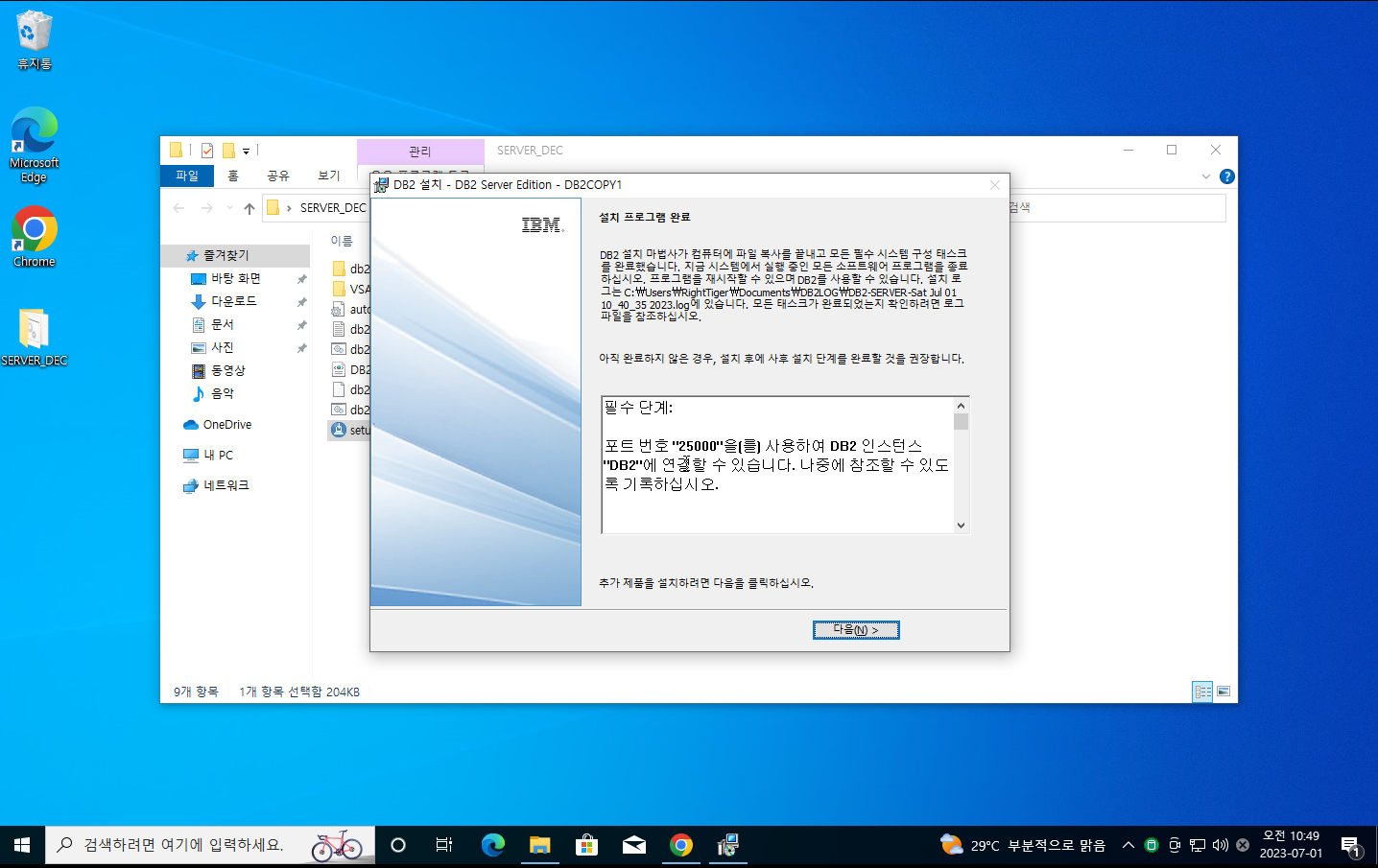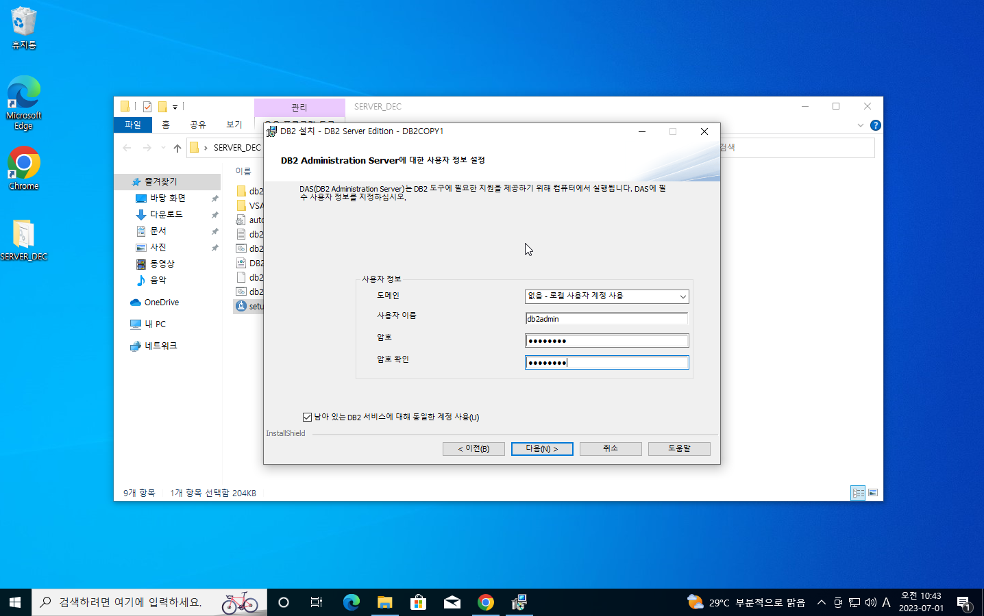 6. 설치 절차에 따라 설치를 진행한다.(Db2 사용자 정보는 admin계정으로 들어가므로 반드시 이름과 암호는 기록해야함)