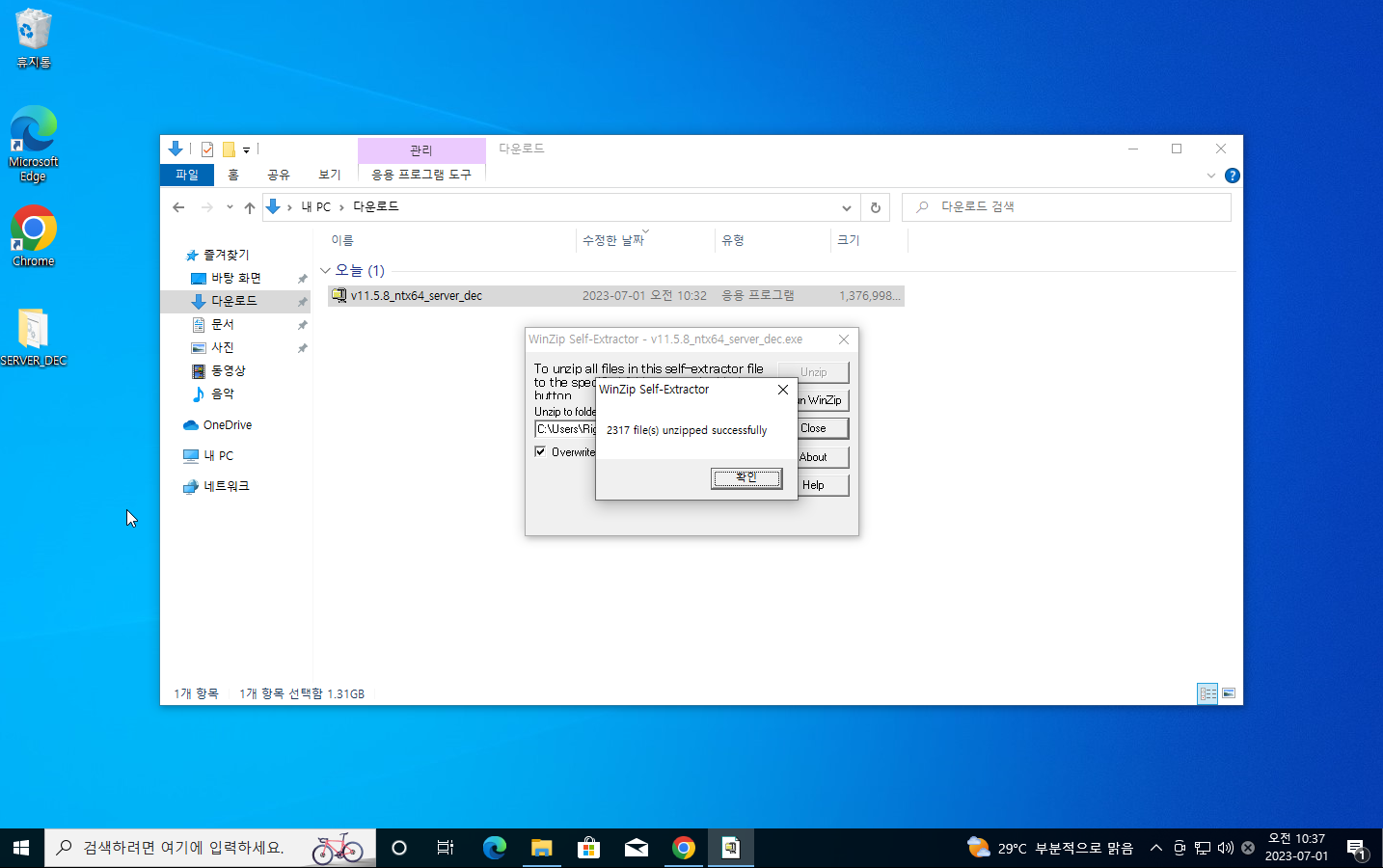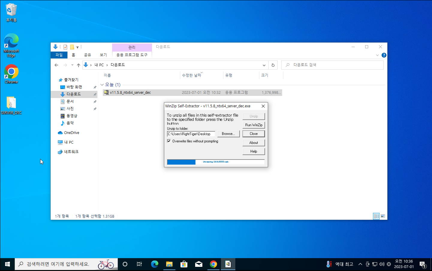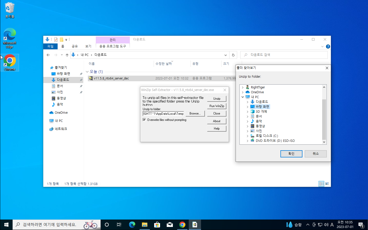 4. 다운로드한 파일을 실행하여 원하는 위치에 압축해제를 진행한다.