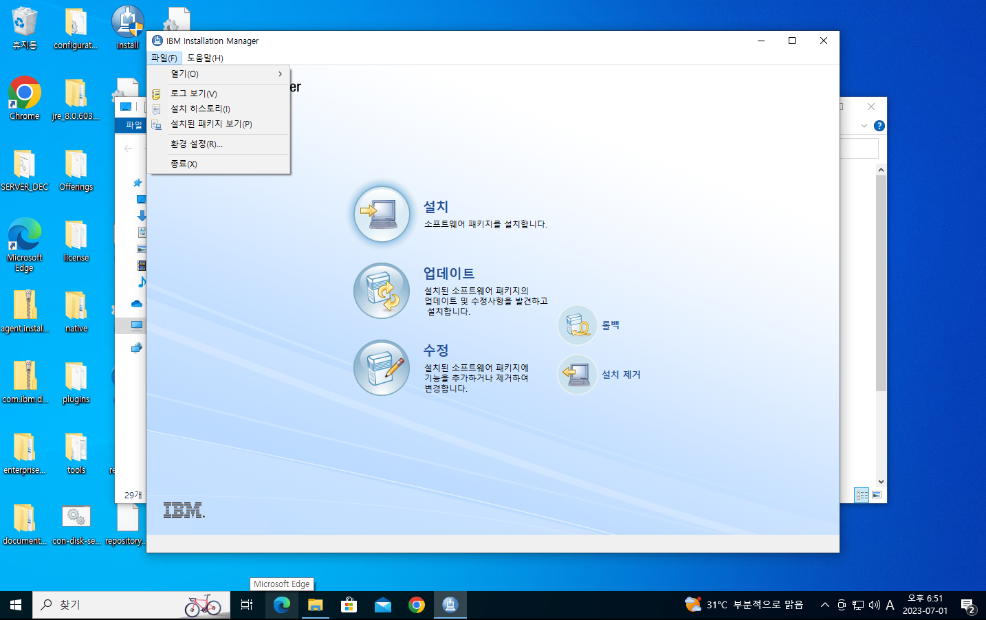8. installer 좌측 상단의 파일(F)를 클릭하여 환경설정 창을 실행한다.