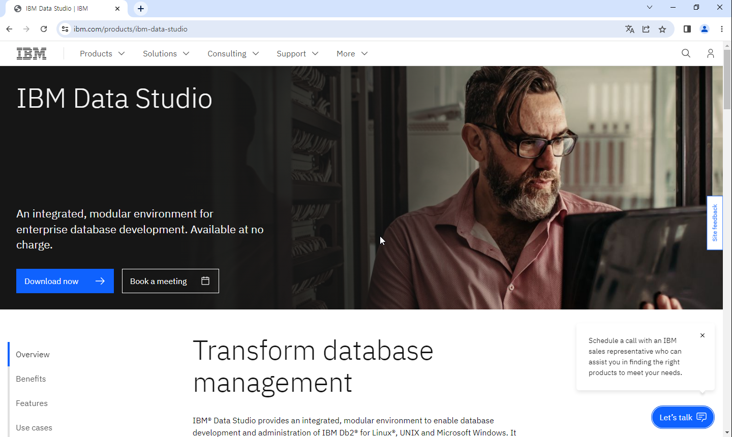 1. IBM 공식 홈페이지에 접속하여 IBM Data Studio 다운로드를 클릭한다.