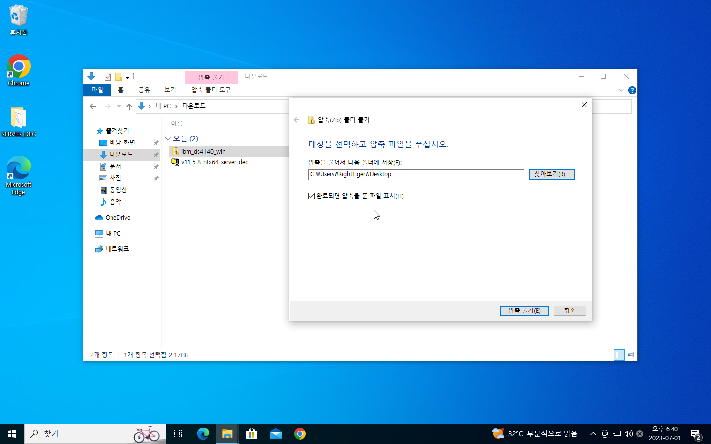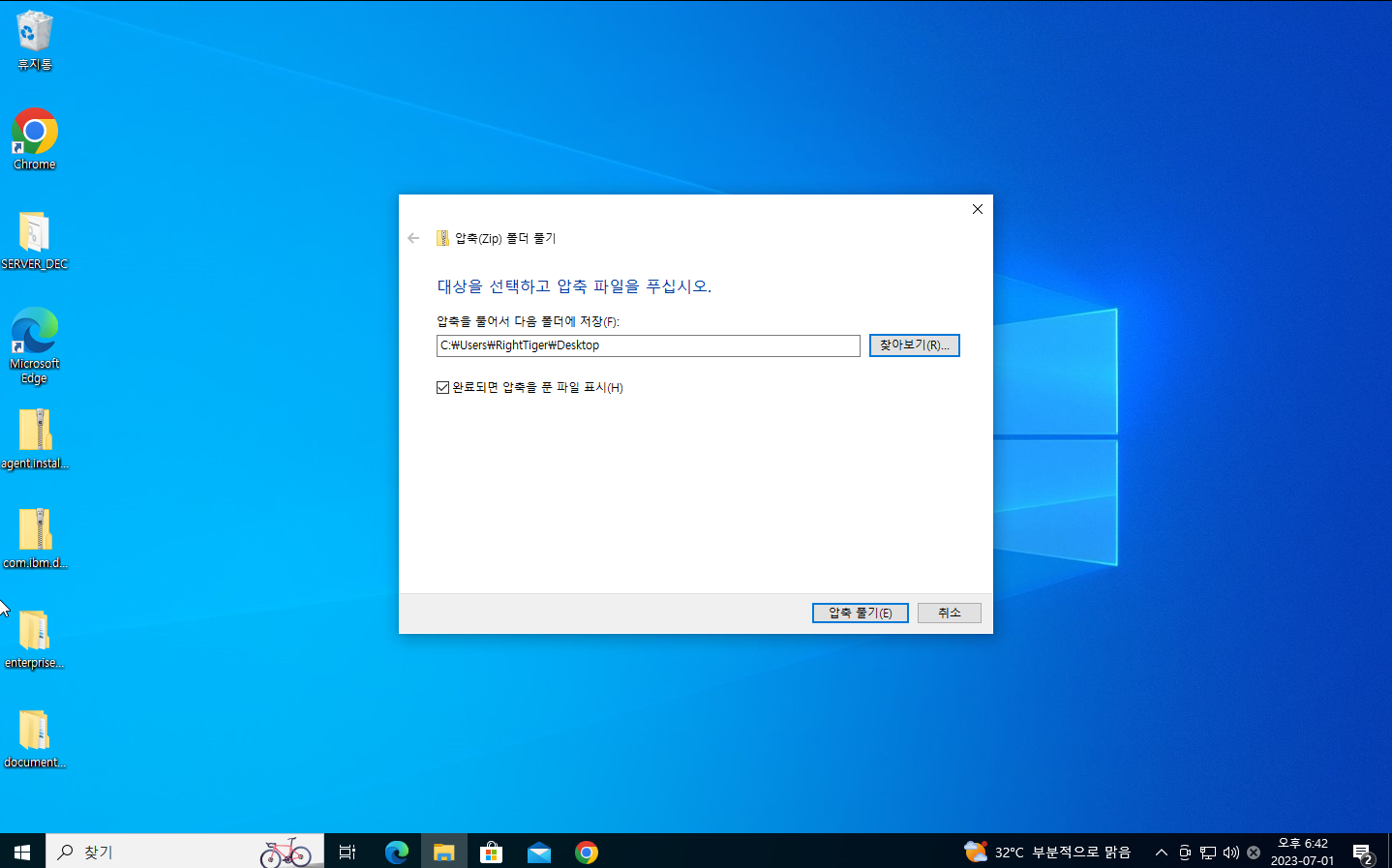 4. 다운로드한 파일을 원하는 위치에 압축해제 한다.