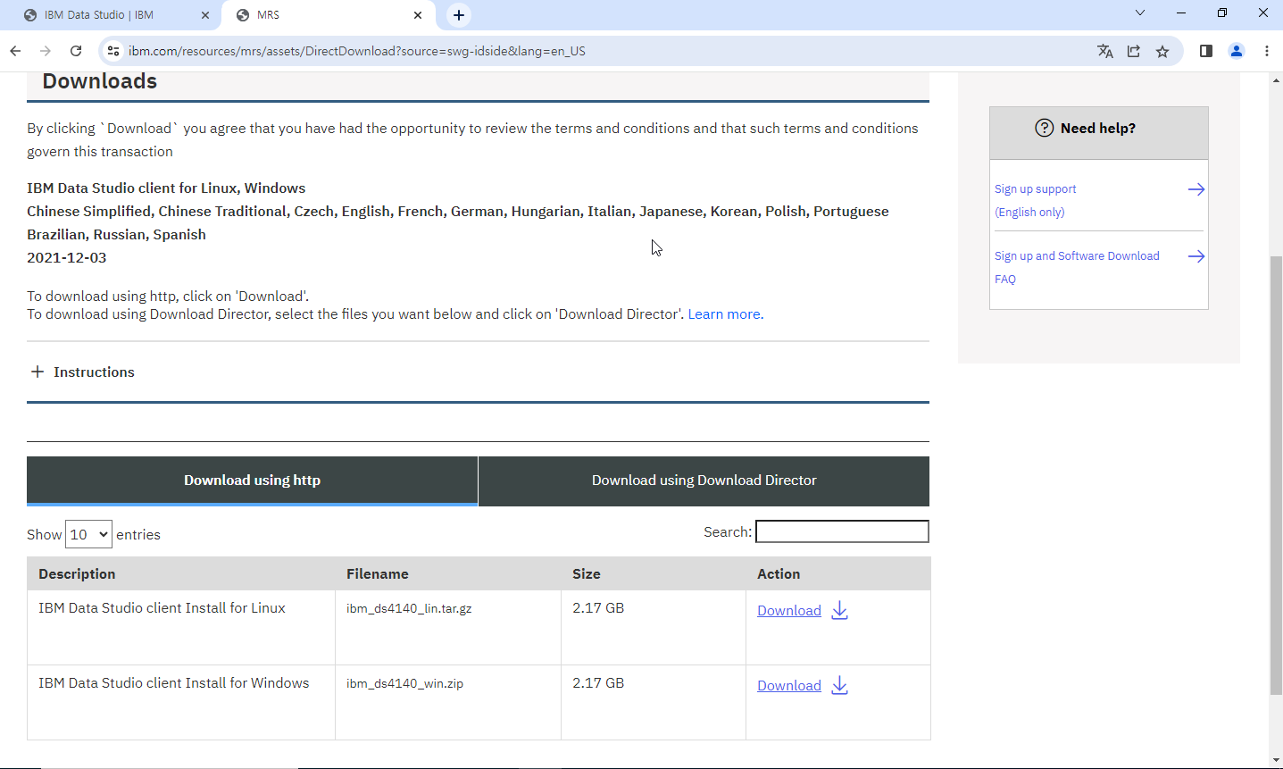 ※ IBM Data Studio 다운로드 홈페이지