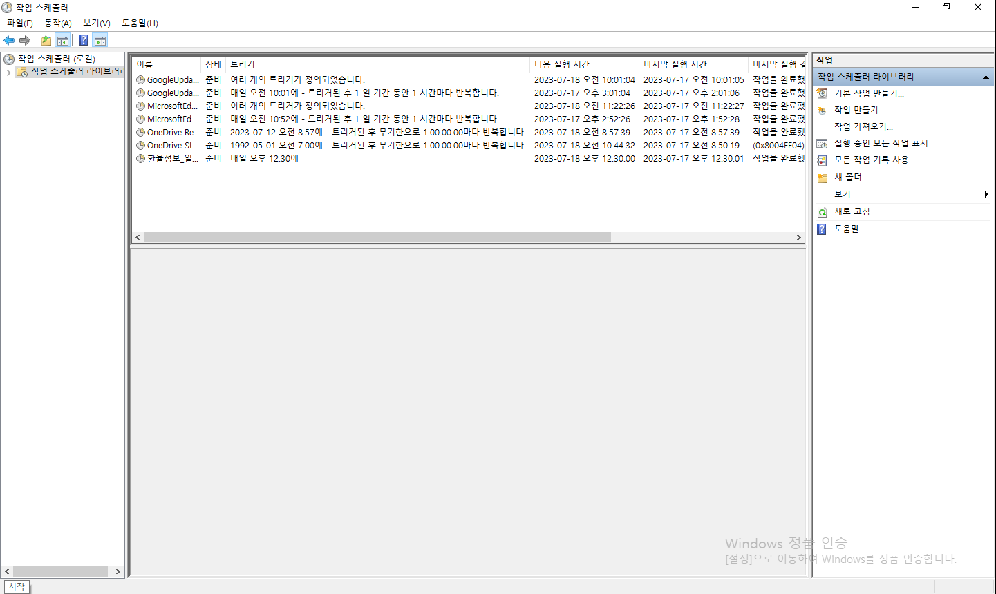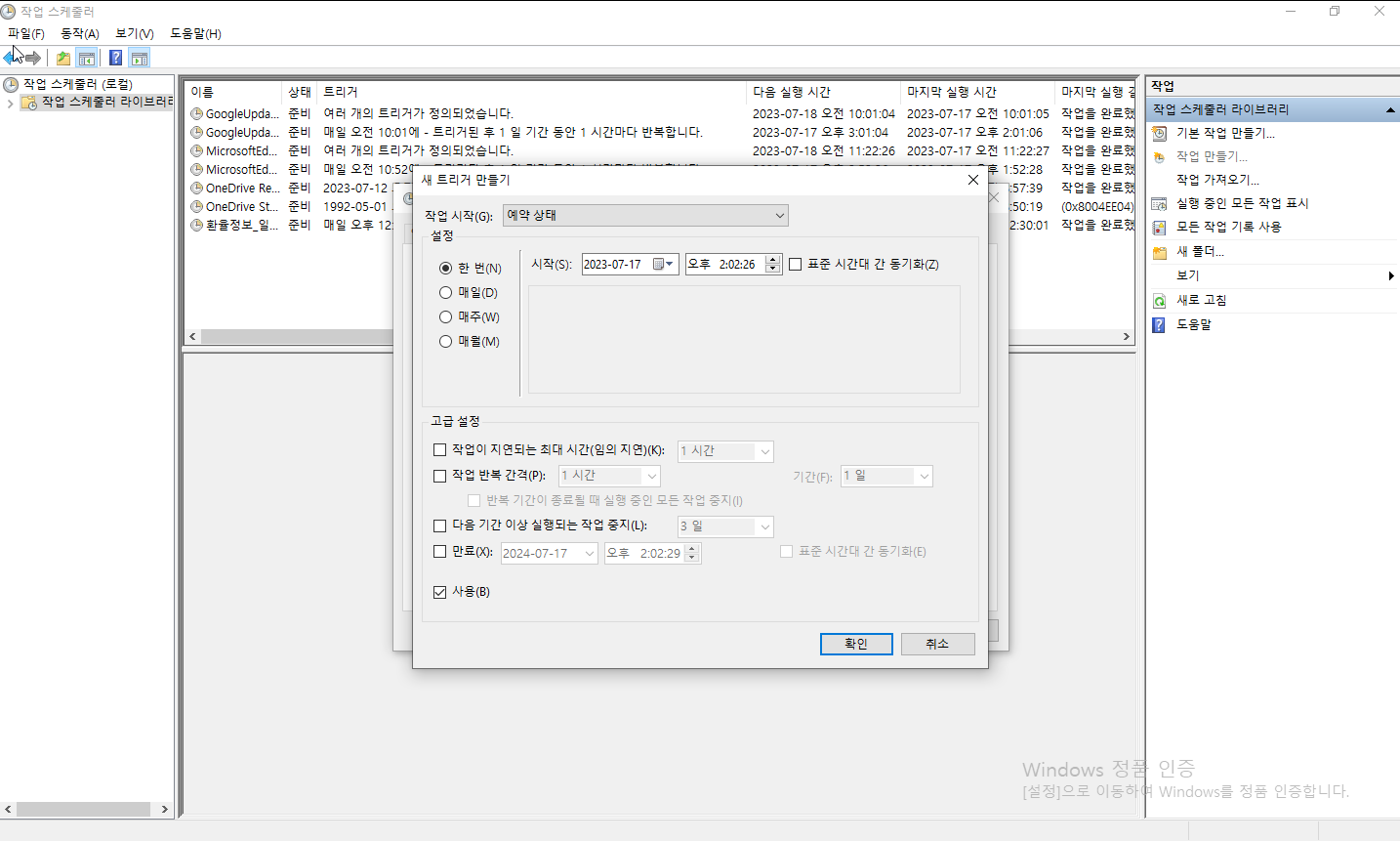 7. Windows작업 스케줄러를 실행시킨 후 해당 bat파일을 실행시킬 수 있는 스케줄을 작성 후 저장합니다.