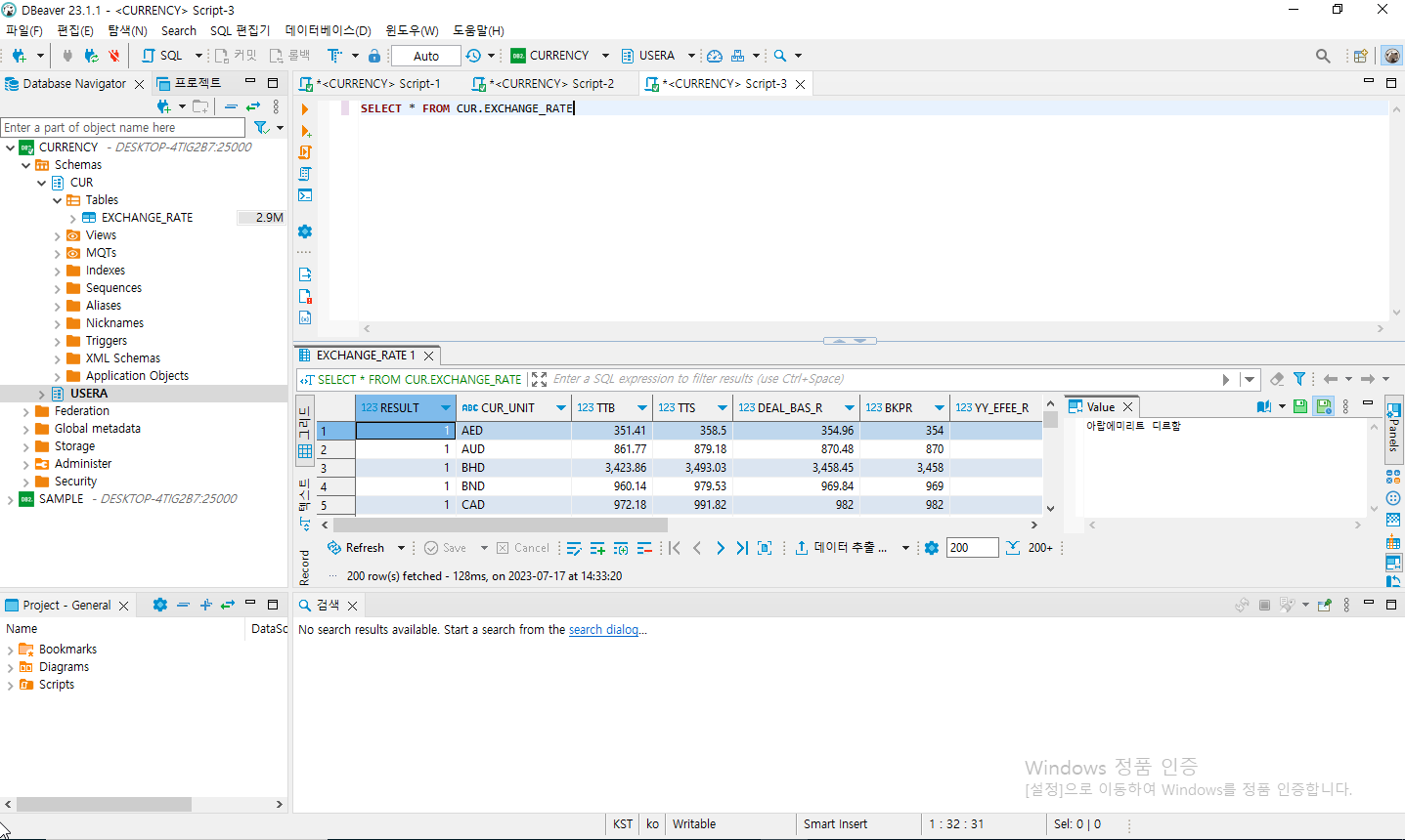 위와 같이 API를 통해 데이터를 호출하실 수 있으시다면 이를 통해 필요한 정보를 일정한 주기를 두고 호출 후 DB에 적재하는 것이 가능합니다. 다만 API를 제공하는 주체에 따라 일일 트래픽 허용량과 같은 제한지점이 있을 수 있으니 이를 실제 서비스에 접목시키기 전에 데이터를 제공해주는 주체쪽에서 제공하는 문서를 참고하는 것이 필요합니다. 이번에는 실 서비스에 들어가는 부분은 아니기에 이 부분은 각설하고 진행하였으며, API와 데이터는 한국수출입은행에서 일일단위로 제공중인 환율정보를 활용하였습니다. DB는 로컬 PC환경의 Db2를 활용하여 진행하였고, Db2 설치가 궁금하신 분들은 아래의 설치 관련 게시글을 참고하시기 바랍니다.