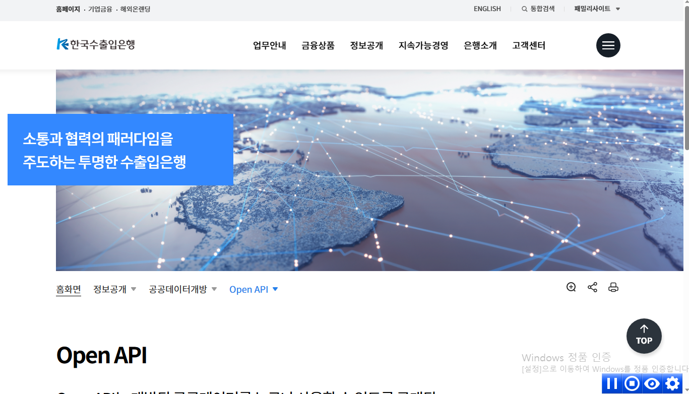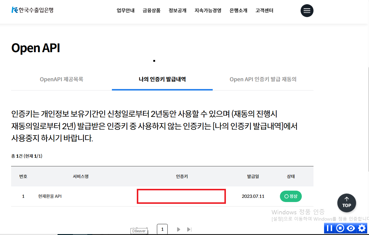 1. 한국 수출입은행이 제공하는 API관련 페이지에 접속합니다.