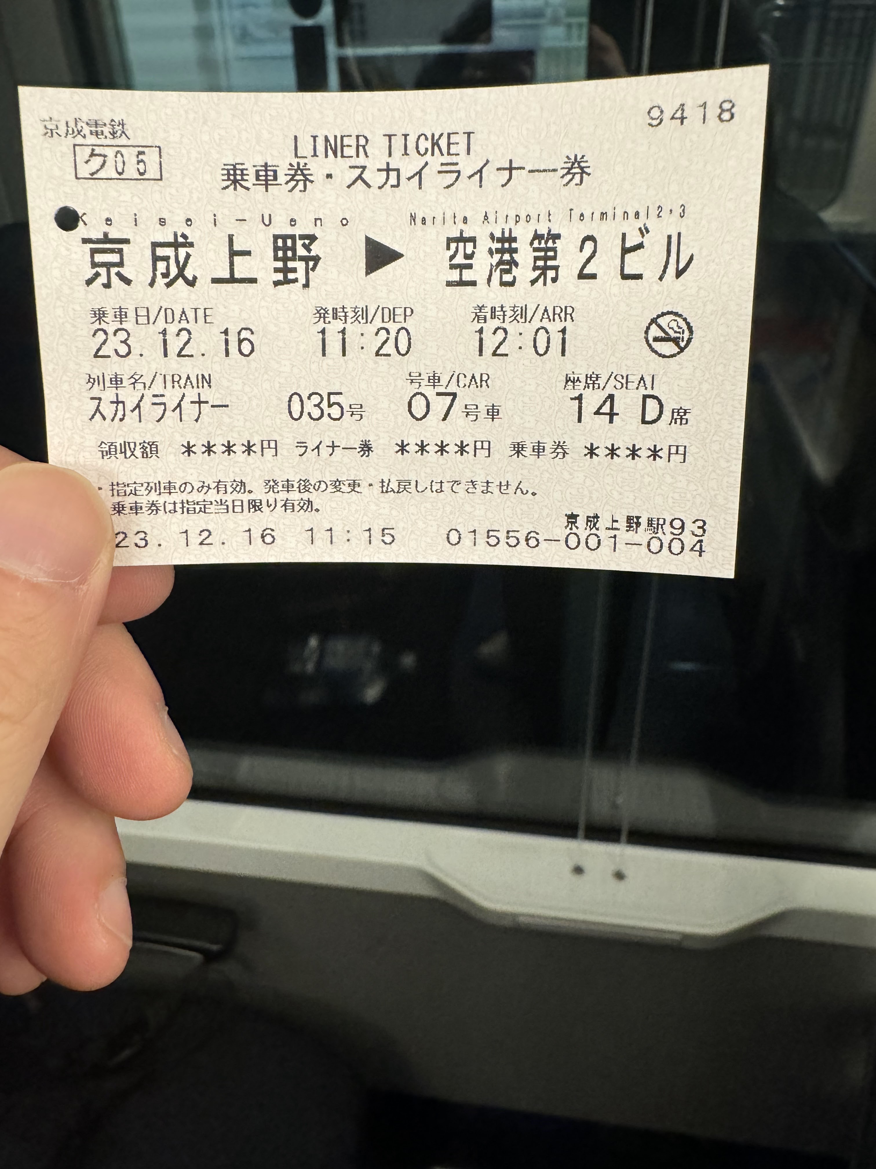 - 숙소에서 체크아웃 후 우에노 역으로 이동하고, 스카이라이너 현장 발권
