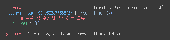 # 튜플 값 수정시 발생하는 오류