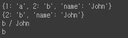 print(dict_01[2], dict_01['name'], sep=' / ')