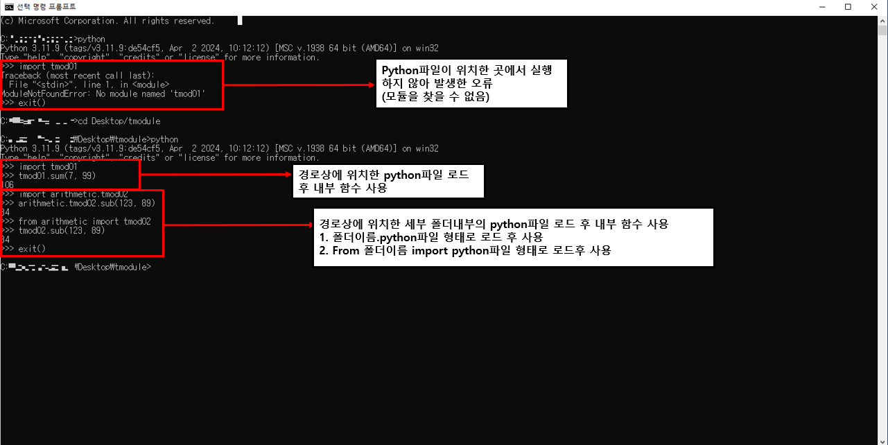 (기본구조 : python파일 작성 후 python을 해당 파일이 위치한 곳에서 실행 후 모듈 import 하여 실행)