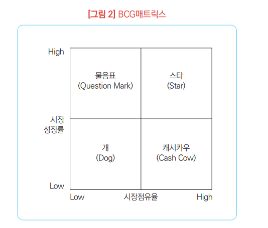 ㆍBCG(Boston Consulting Group) 매트릭스 : 사업 포트폴리오를 시장점유율과 시장성장률을 기준으로 분석하는 프레임워크