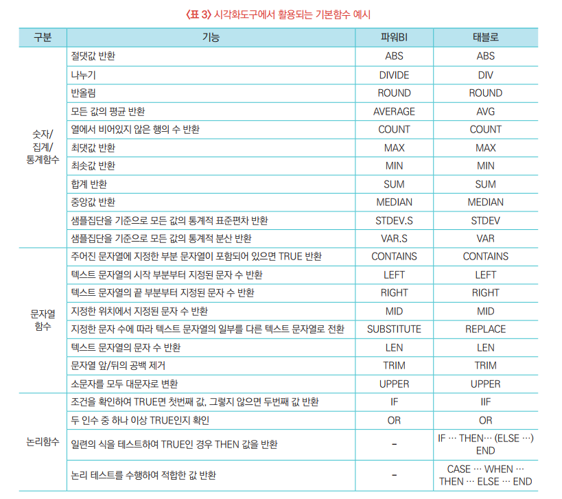 3. 시각화도구(BI 소프트웨어)의 주요 기능