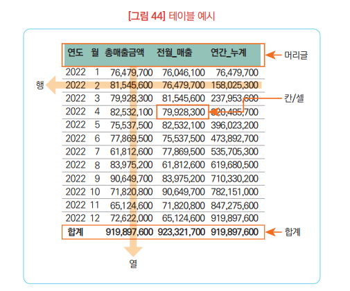ㆍ테이블 디자인에도 크기, 색상, 선 굵기, 선 유형 등의 시각적 속성이 적용될 수 있음.