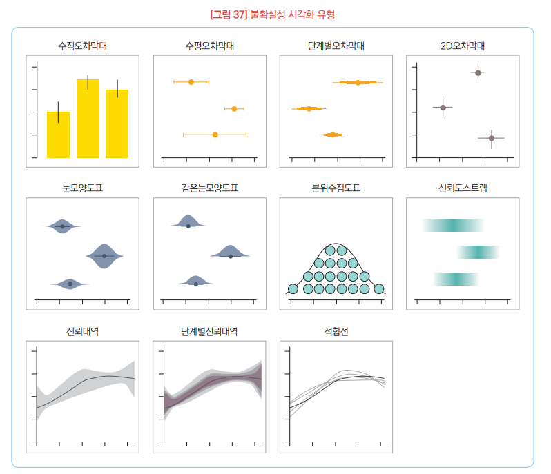 ㆍ오차의 표현을 포함하는 시각화로 데이터의 불확실성이 존재할 때, 불확실성을 표시하는 시각화임.