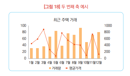 ▶ 단일 축을 활용하기도 하나 이중 축(보조 축)을 활용할 경우 복합적인 정보를 제공할 수 있음.