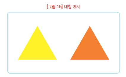 | 크기 변화 | 크기를 확대하거나 축소함으로써 디자인에 균형, 강조 또는 조화 등의 시각적인 효과 부여 |