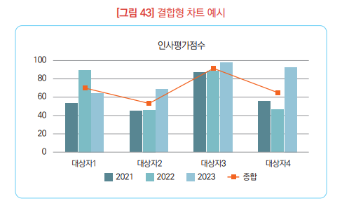 ▶ 두 개 종류의 차트를 결합하여 제시함으로써 다양한 정보를 제공하는 것이 가능함.