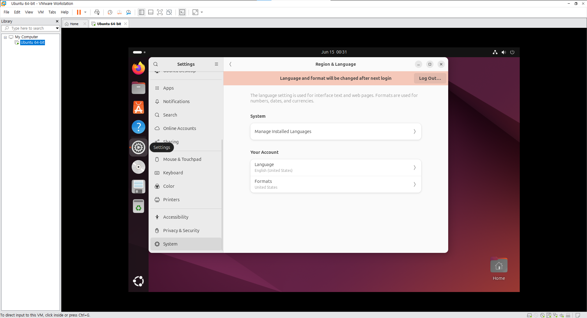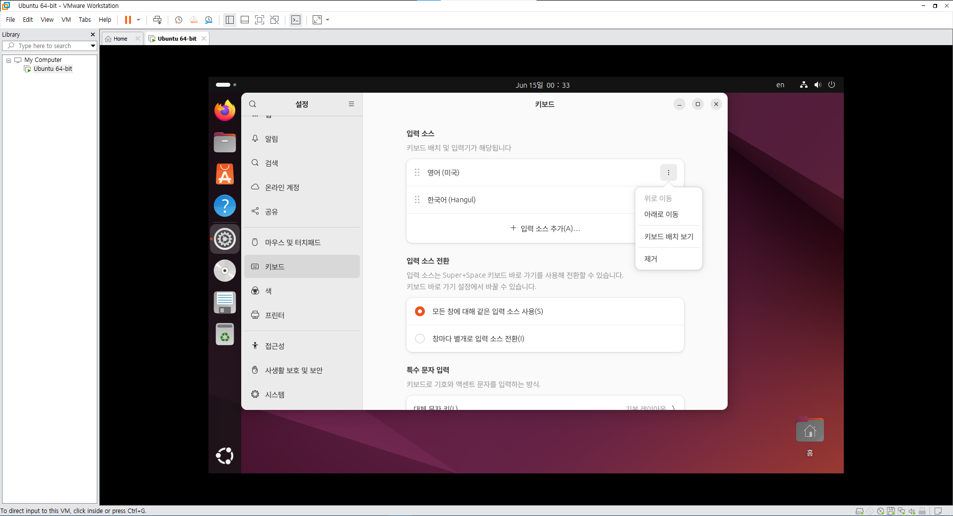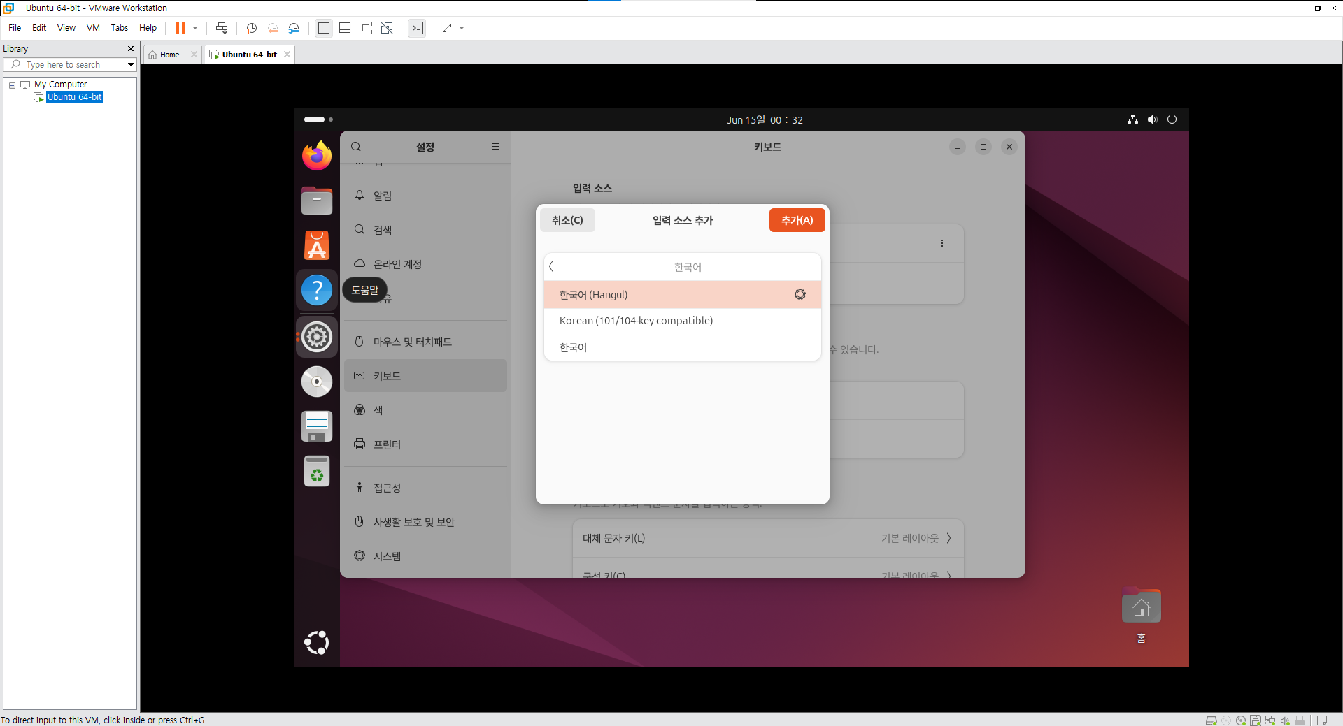 ※ Ubuntu 접속 후 기본 언어와 키보드 세팅 변경방법