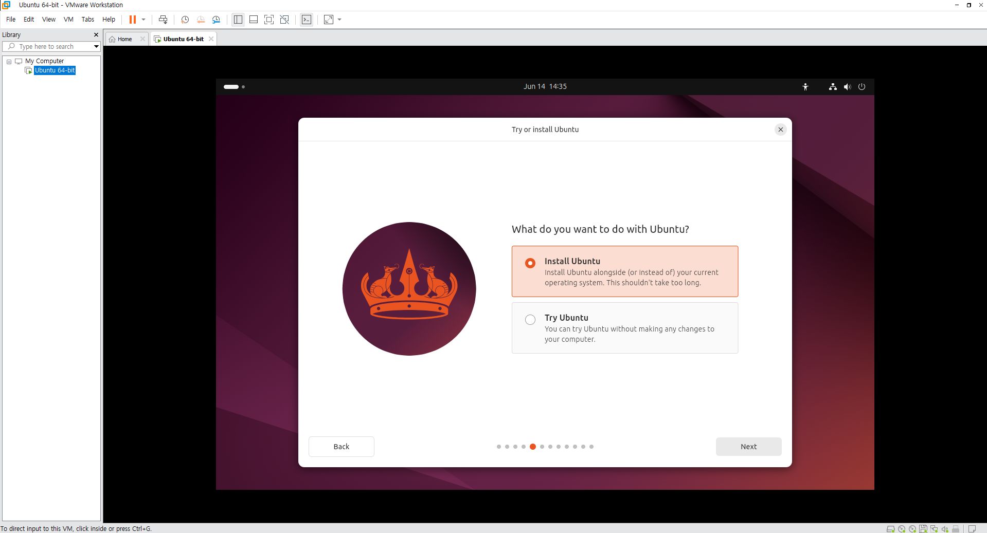 1. Ubuntu ISO를 적용한 VM을 실행한다.