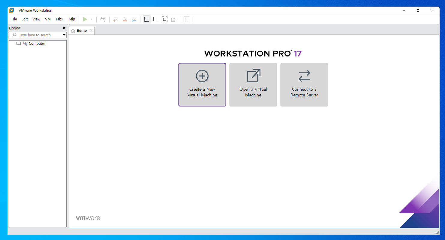 1. VMware Workstation Pro를 실행 후 Create a New Virtual Machine을 클릭한다.
