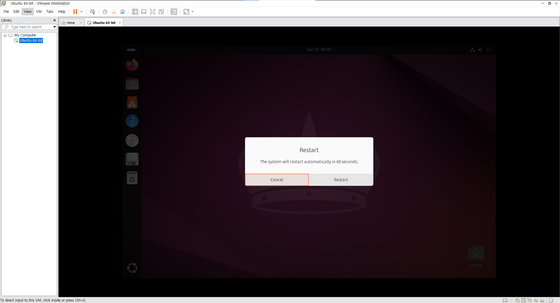 6. 설치가 완료되면 Ubuntu를 재시작하고, 다시 Setting 메뉴를 클릭한다.
