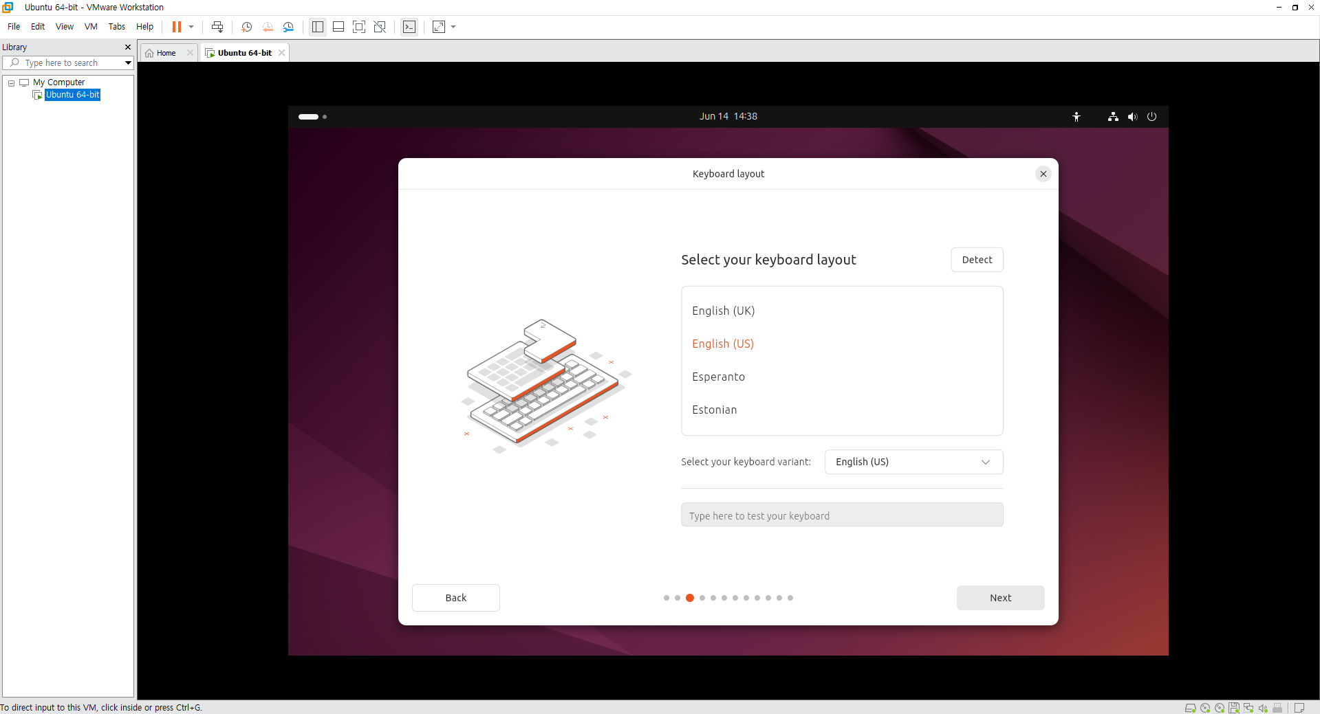 (기본 언어와 키보드 세팅은 오류 방지를 위해 English로 진행하였으며, 해당 설정은 설치 완료 후 세팅 변경이 가능함.)