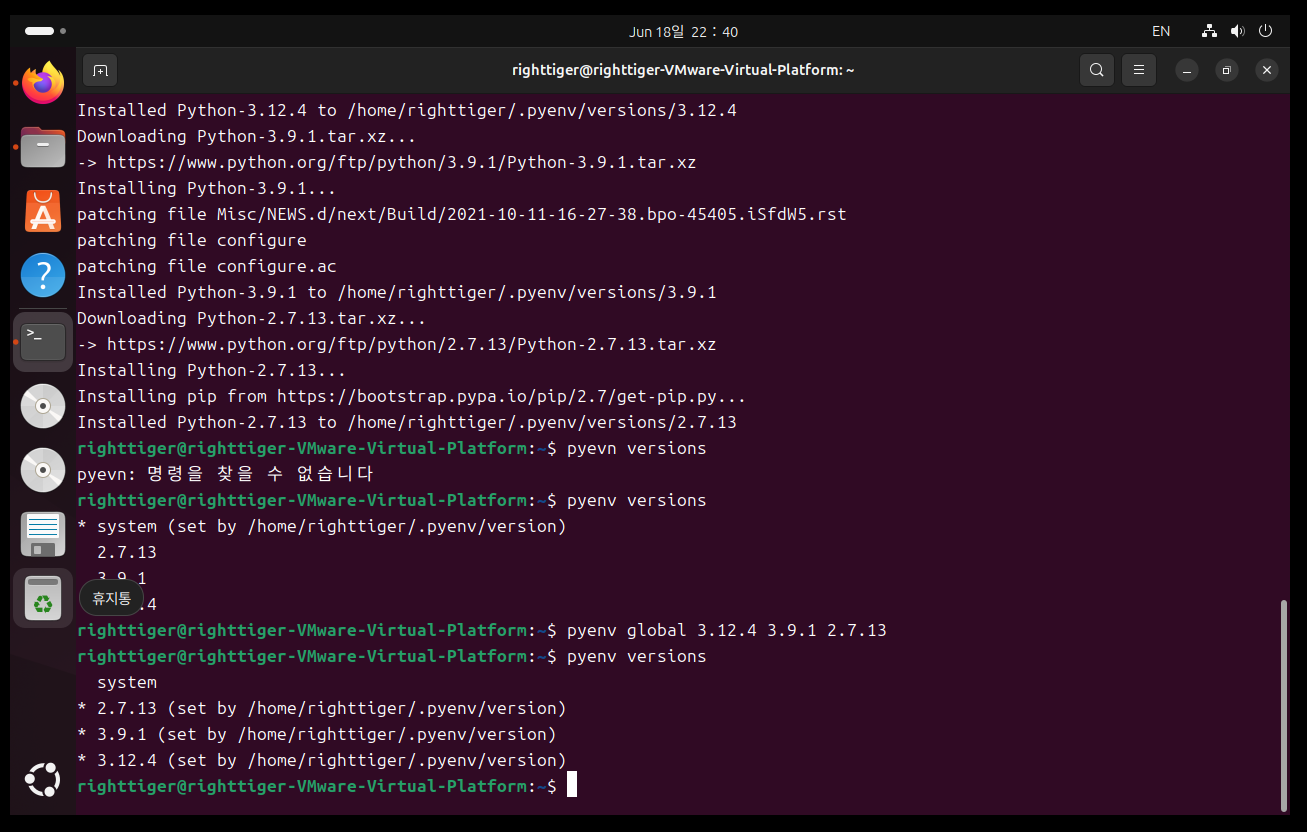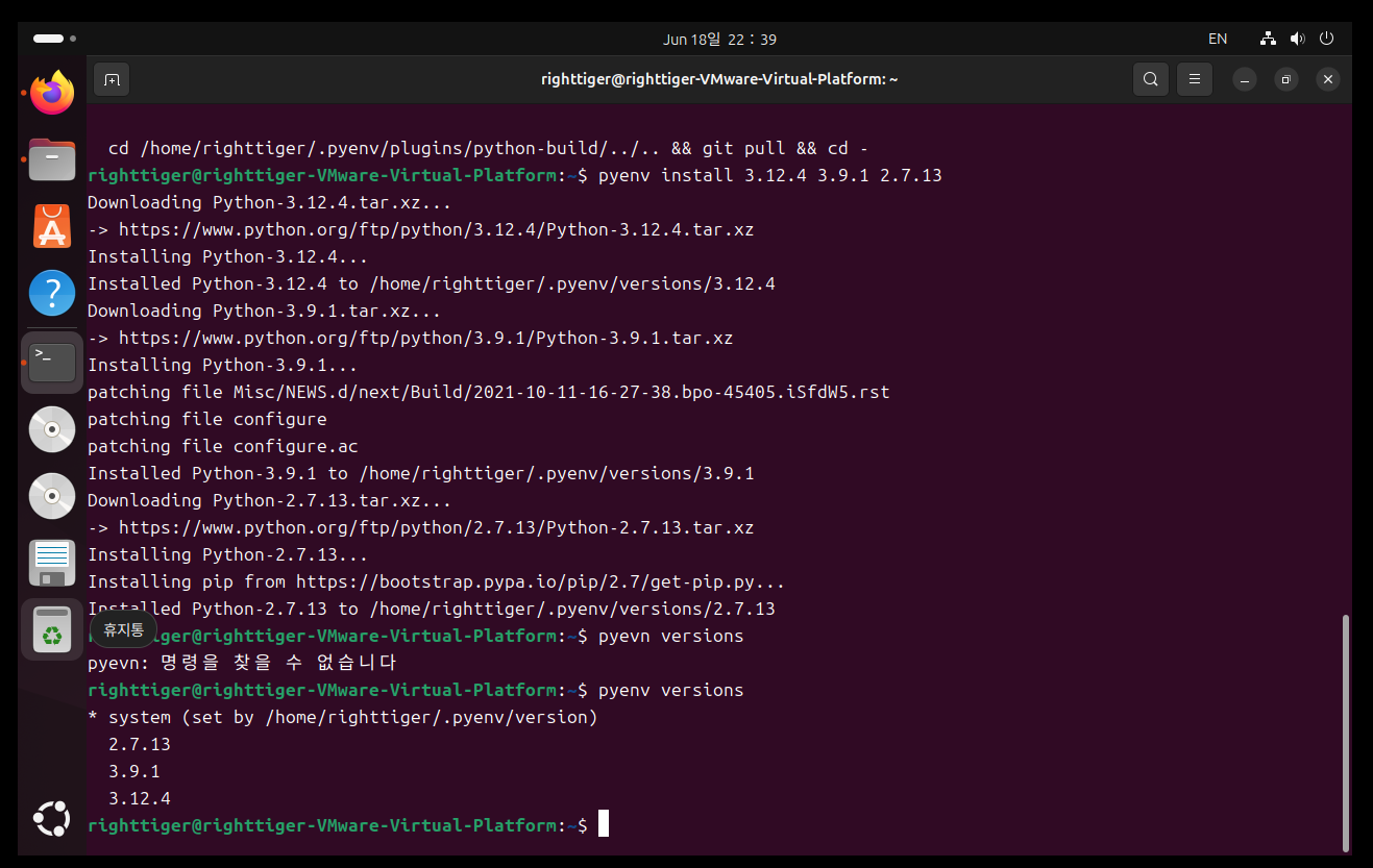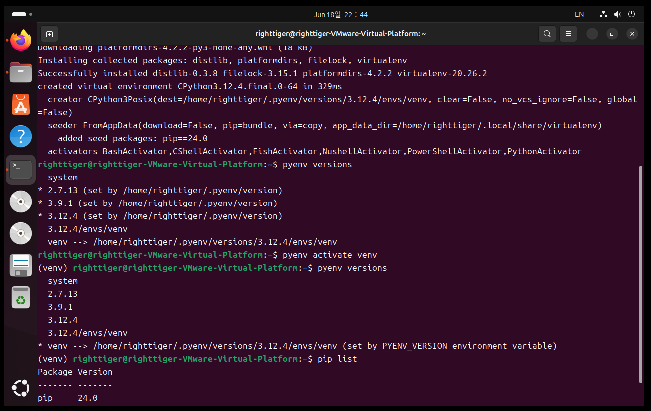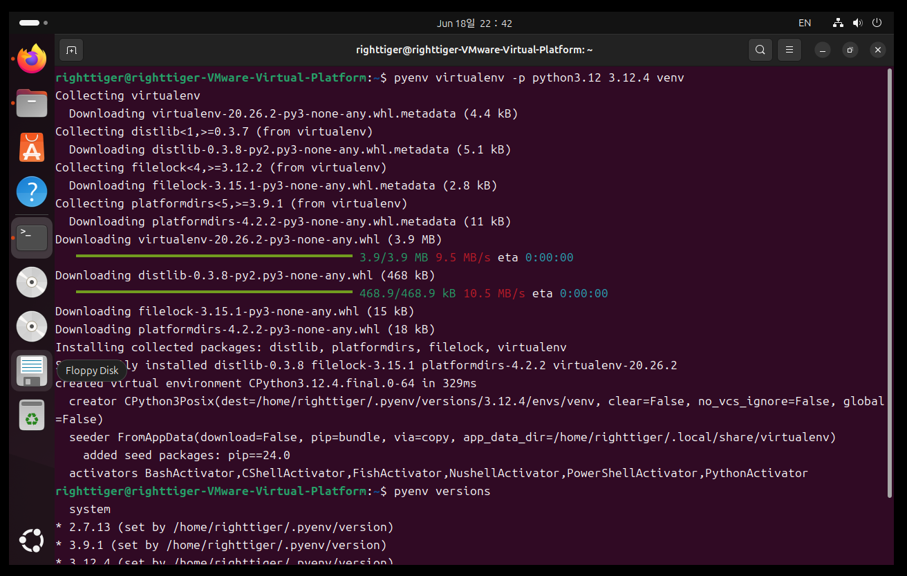 6. pyenv에 필요한 python 버전 설치 후 가상환경 생성