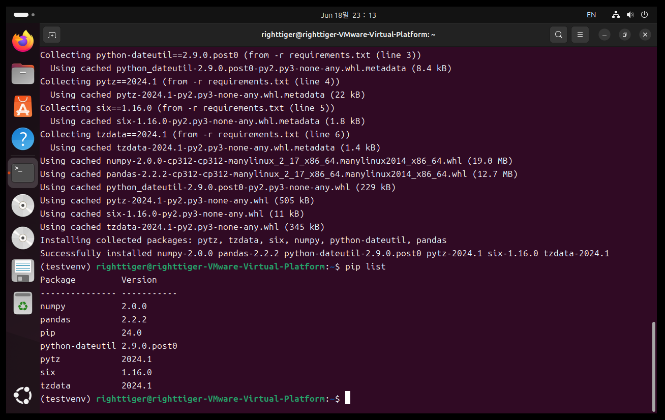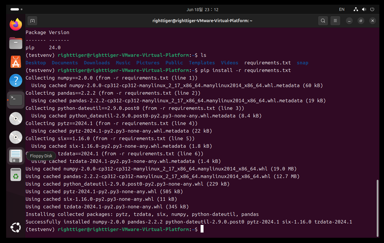 [해당 명령어 실행시에는 반드시 가상환경 접속 후 Terminal를 requirements.txt가 위치한 곳으로 이동 후 설치할 것]